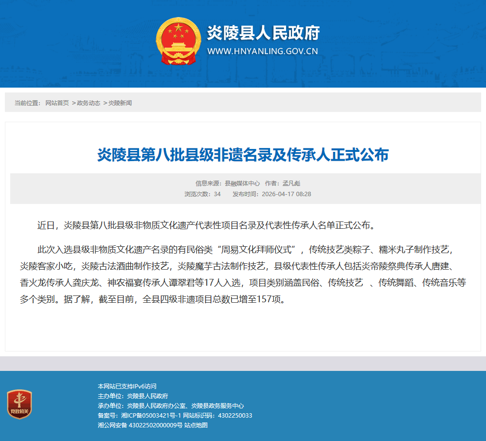 时间:2026-04-17 08:28:00 来源: 炎陵县人民政府 来源截图