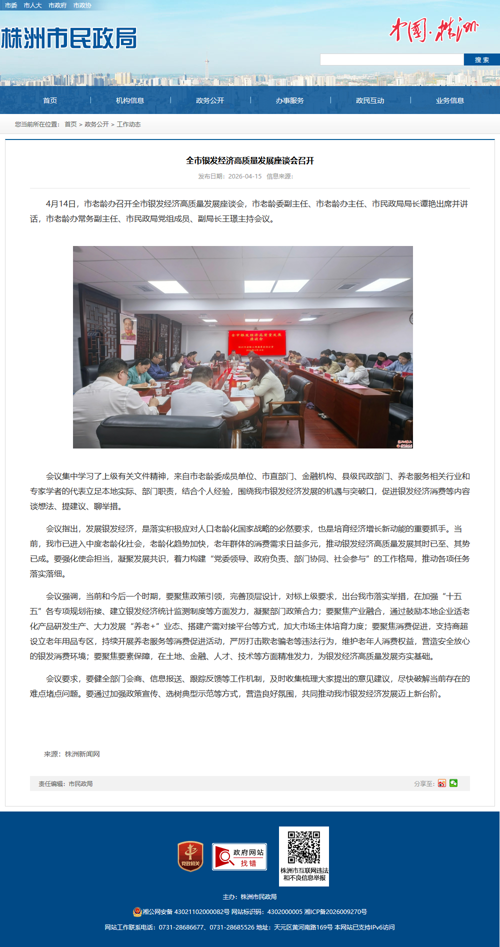 4月14日,市老龄办召开全市银发经济高质量发展座谈会,市老龄委副主任、市老龄办主任、市民政局局长谭艳出席并讲话,市老龄办常务副主任、市民政局党组成员、副局长王璟主持会议。