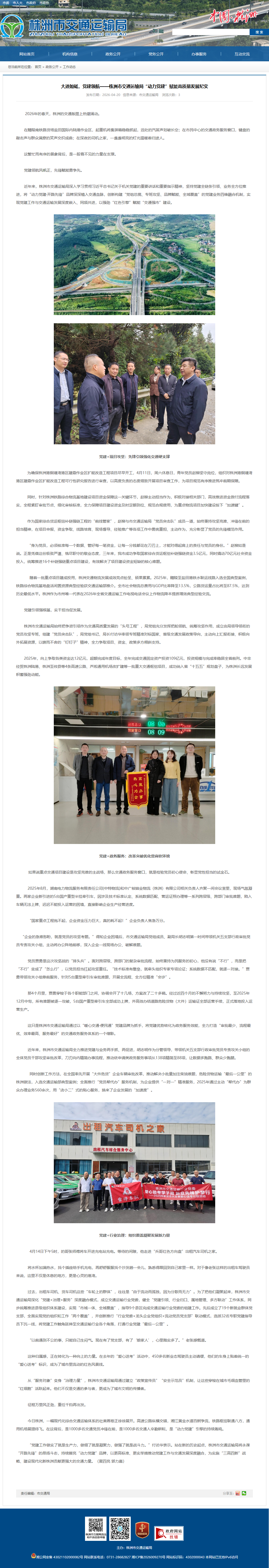 这只是株洲市交通运输局通过以“暖心交通·便民通”党建品牌为抓手,将党建优势转化为政务服务效能,全力打造“审批最少、流程最优、效率最高、服务最好”的交通政务服务体系的一个缩影。