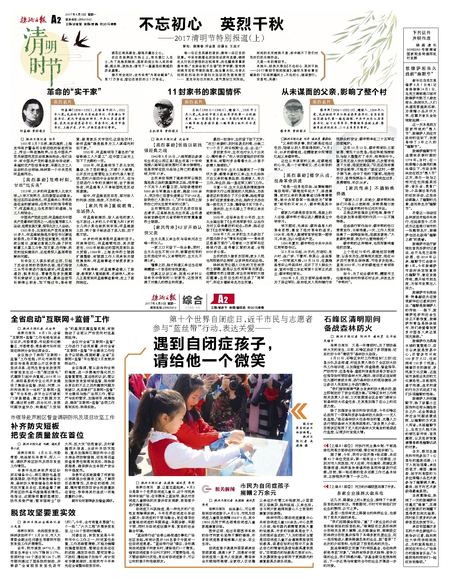 本报今、明两天推出《不忘初心 英烈千秋——2017清明节特别报道》,缅怀为革命事业献身的7位株洲籍烈士,不忘初心,继续前行。