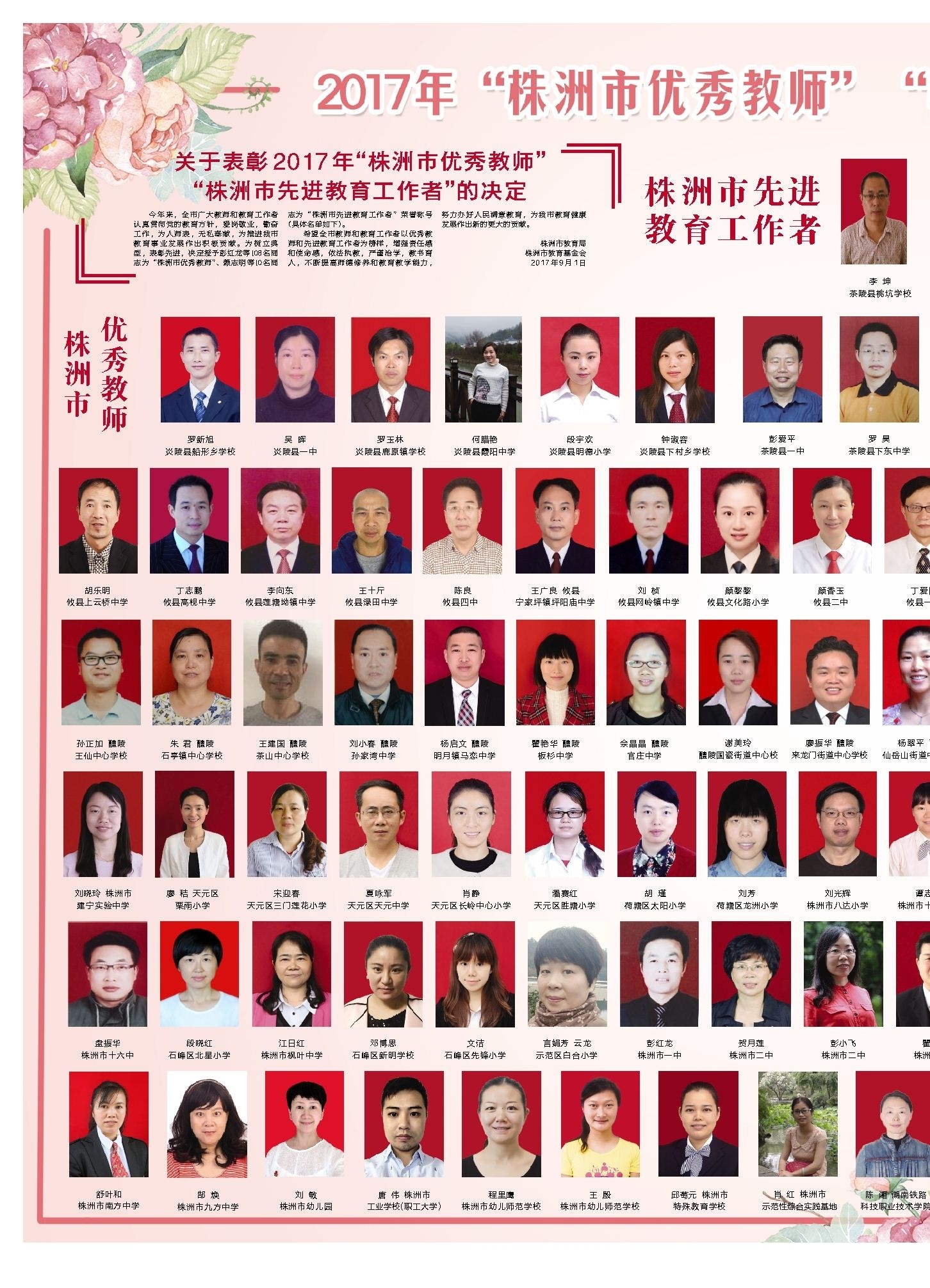 关于表彰2017年“株洲市优秀教师”“株洲市先进教育工作者”的决定