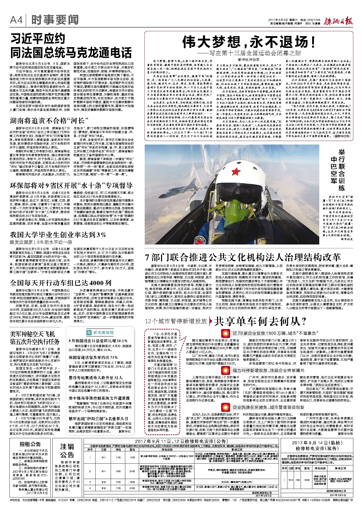 据新华社华盛顿9月7日电 美国空军的X-37B空天飞机7日搭乘美国太空探索技术公司的“猎鹰9”火箭,从佛罗里达州肯尼迪航天中心发射升空,执行其第五次在轨飞行任务。