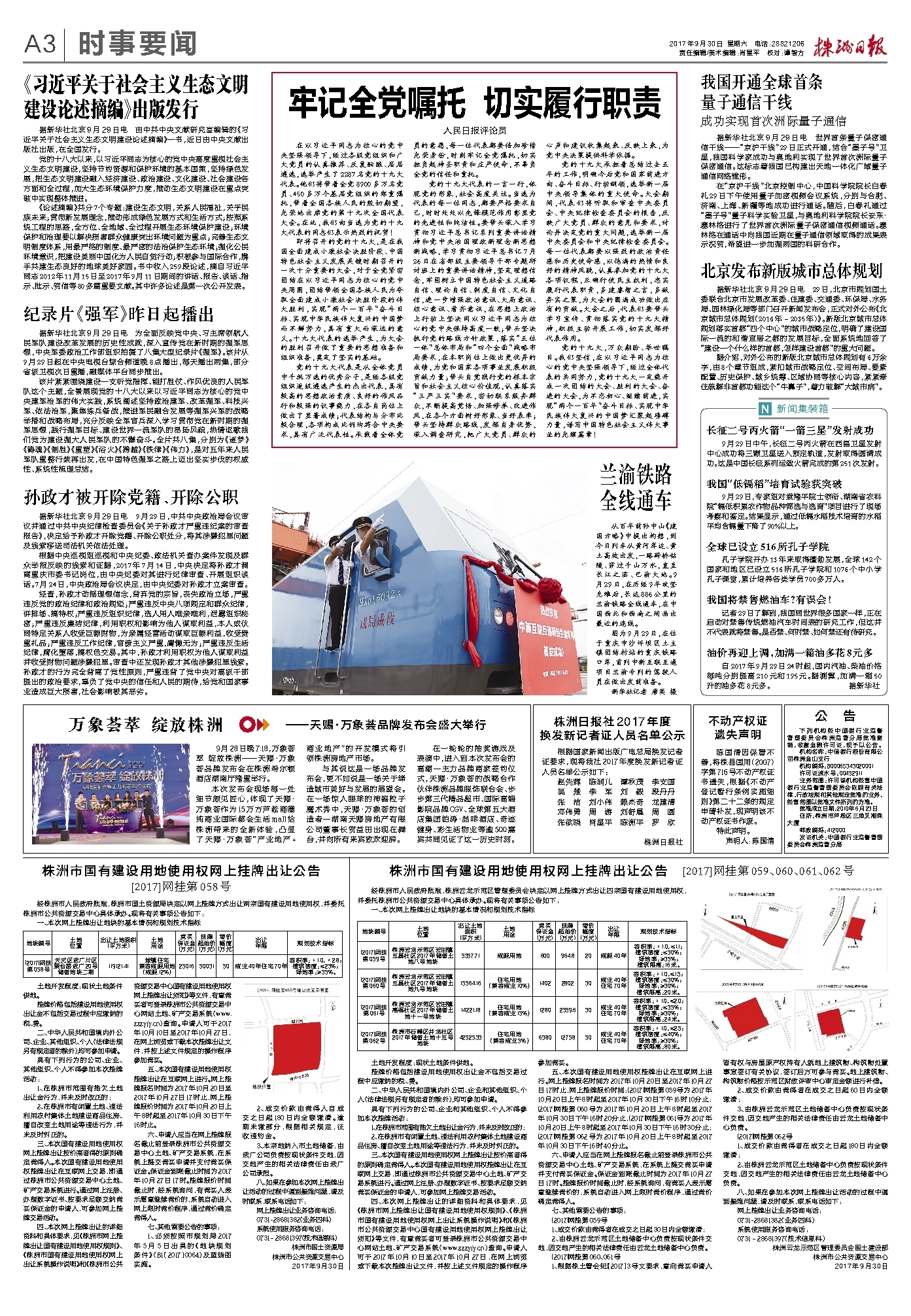 2017年09月30日《株洲日报》