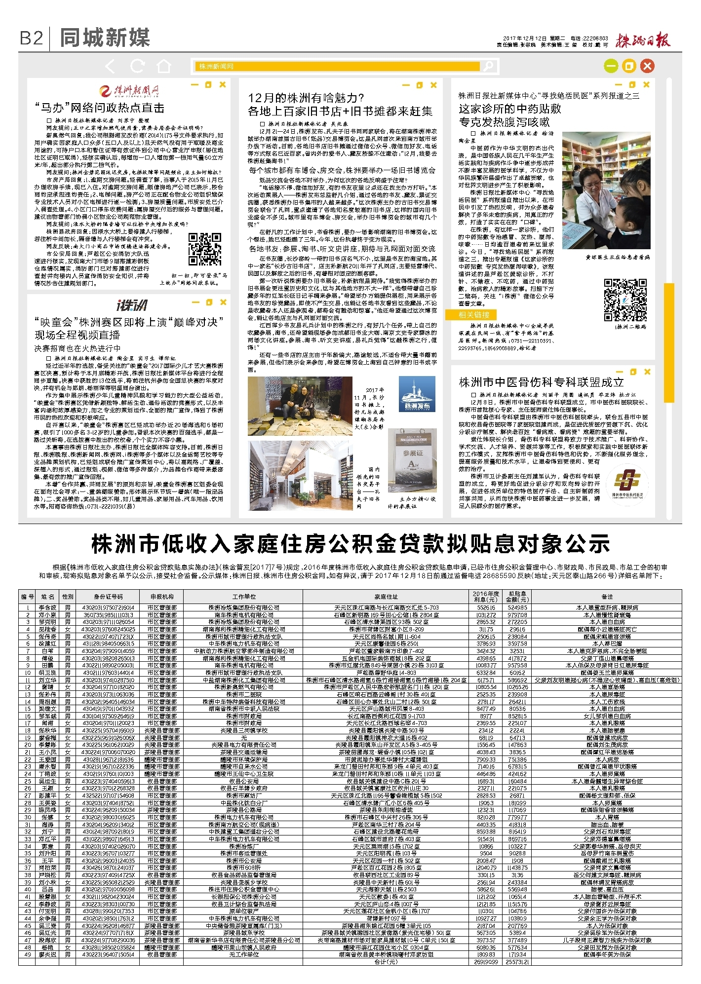 株洲市低收入家庭住房公积金贷款拟贴息对象公示