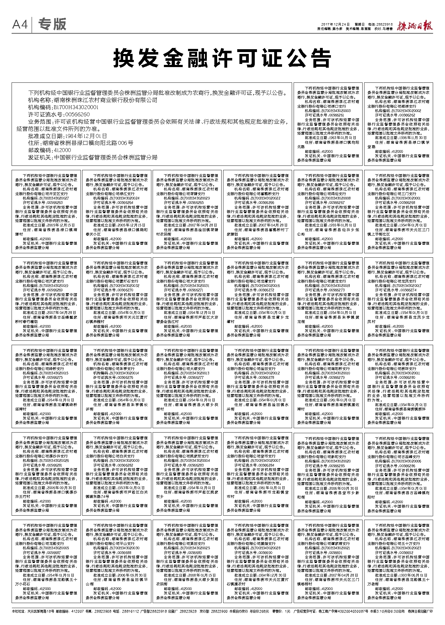 2017年12月24日《株洲日报》
