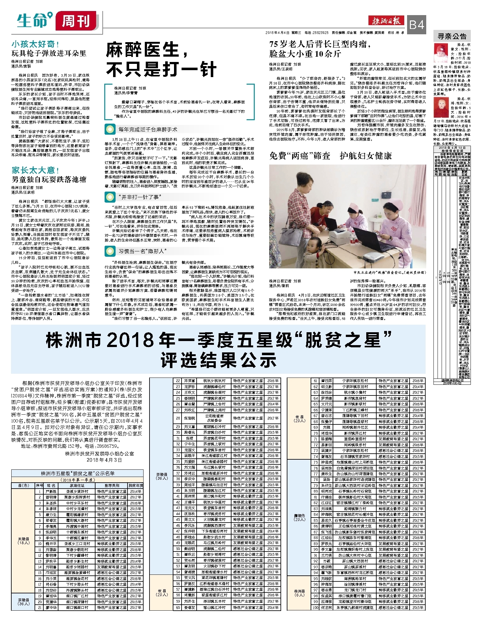 根据《株洲市扶贫开发领导小组办公室关于印发〈株洲市“贫困户脱贫之星”评选活动实施方案〉的通知》(株扶办发[2018]14号)文件精神,株洲市第一季度“脱贫之星”评选,经过贫困户自荐或村组推荐;经乡镇(街道)党委初审;县市扶贫开发领导小组审核;报送市扶贫开发领导小组审核评定,共评选出现株洲市一季度“脱贫之星”991名,其中五星级“贫困户脱贫之星”100名,现将五星级名单予以公示。公示期5天,自2018年4月4日至4月9日。如对公示对象有异议,请在公示期内,实事求是、客观公正地实名书面向株洲市扶贫开发领导小组办公室反映情况,对所反映的问题,我们将认真进行调查核实。