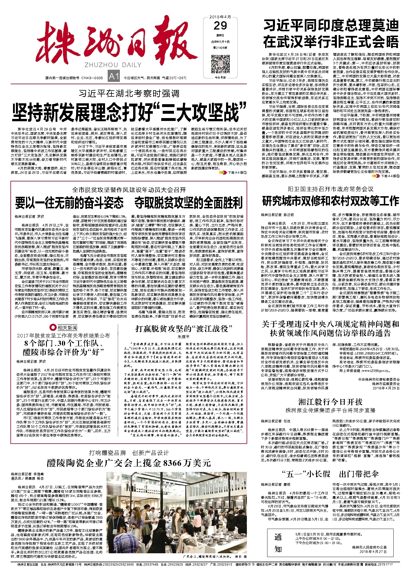 新华社武汉4月28日电(记者 李忠发 孙奕)国家主席习近平27日和28日在武汉东湖宾馆同印度总理莫迪举行非正式会晤。