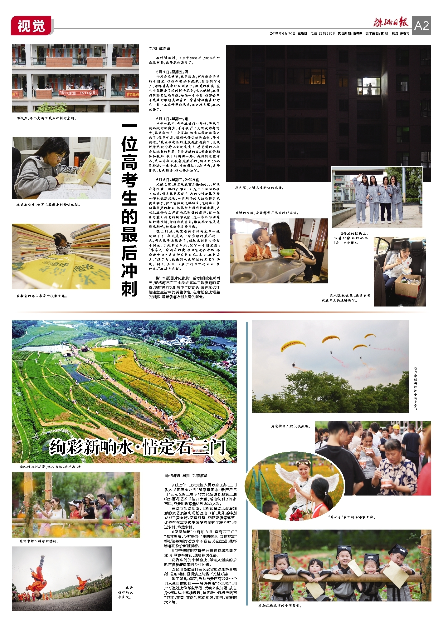 附:本版图片见报时,高考刚刚结束两天,谭浩洲已在二中考点完成了她所有的答卷。她的表姐给她写下了这句话:愿你永远怀揣疲惫生活中的英雄梦想,在考场合上笔盖的刹那,带着侠客收剑入鞘的骄傲。