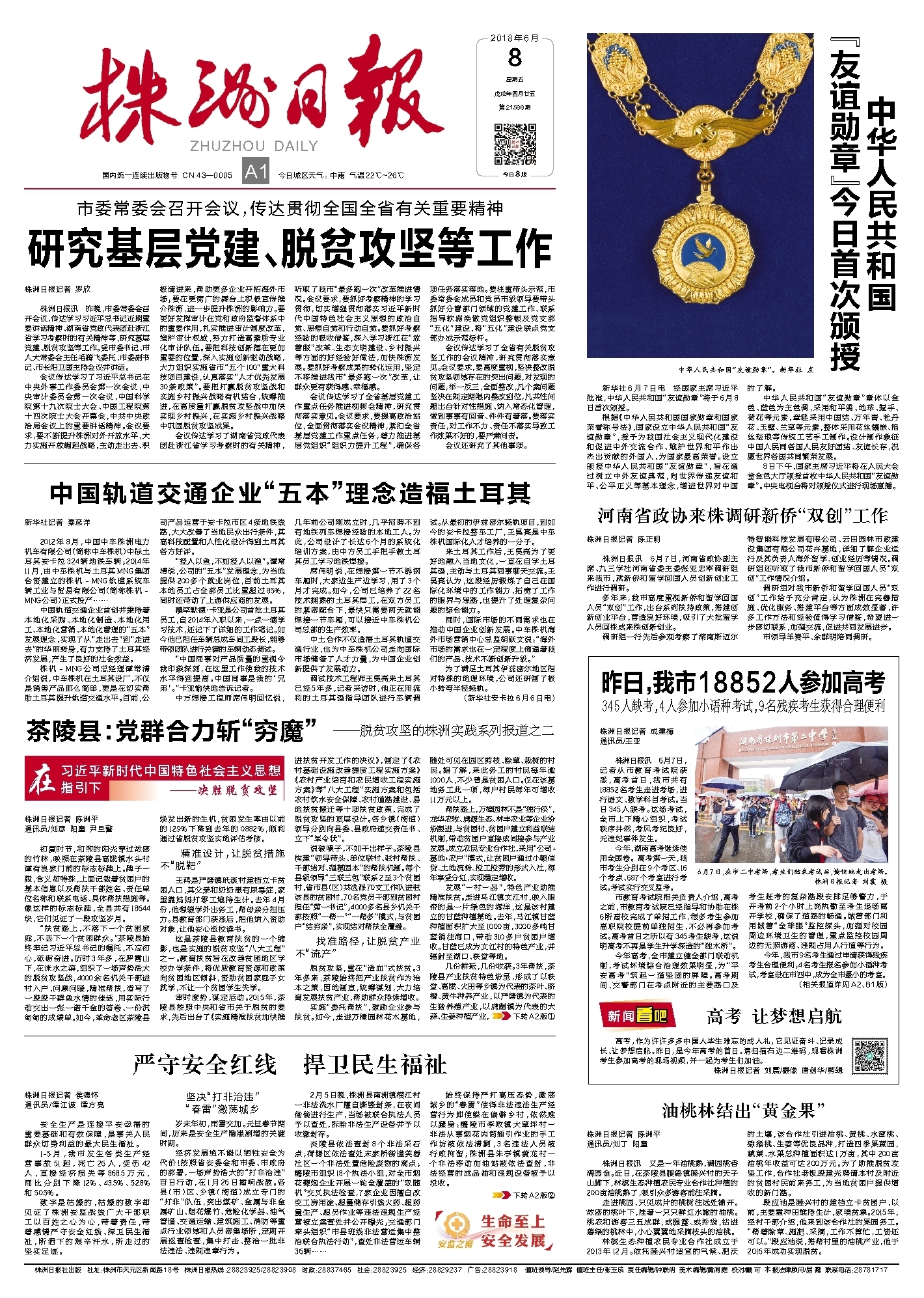 新华社6月7日电 经国家主席习近平批准,中华人民共和国“友谊勋章”将于6月8日首次颁授。