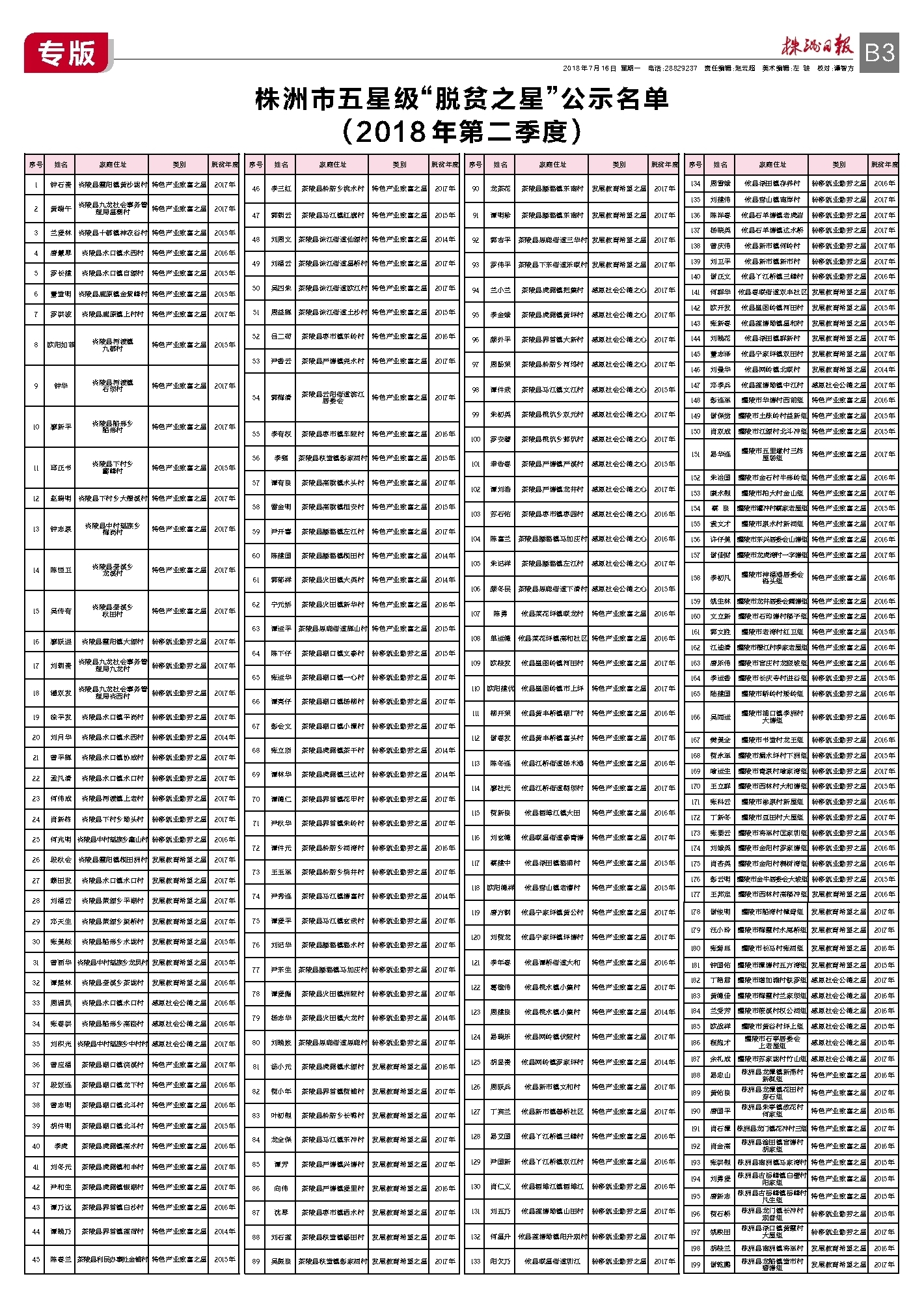 株洲市五星级“脱贫之星”公示名单 (2018年第二季度)