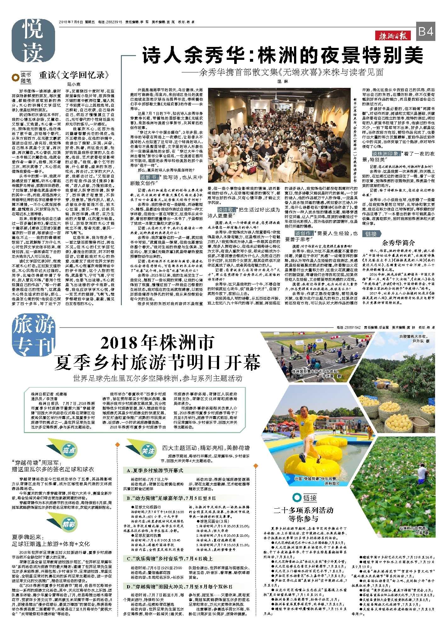 株洲日报讯 7月7日,2018株洲市夏季乡村旅游节暨第六届“穿越荷塘”田园大冲关启动仪式将在荷塘区仙庾岭风景区举行开幕式。本届夏季乡村旅游节的亮点之一,是世界足球先生里瓦尔多空降株洲,参与系列主题活动。
