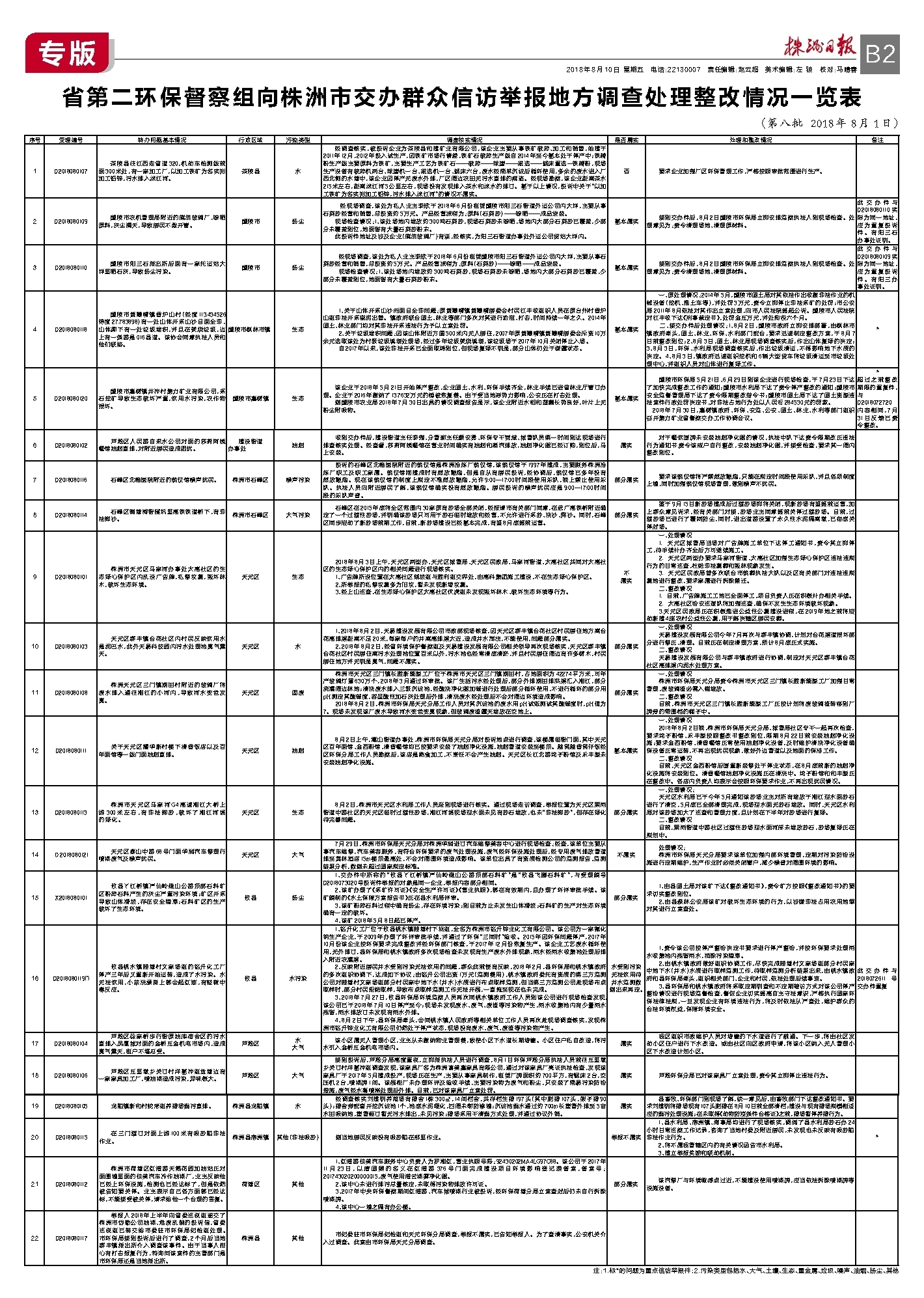 省第二环保督察组向株洲市交办群众信访举报地方调查处理整改情况一览表