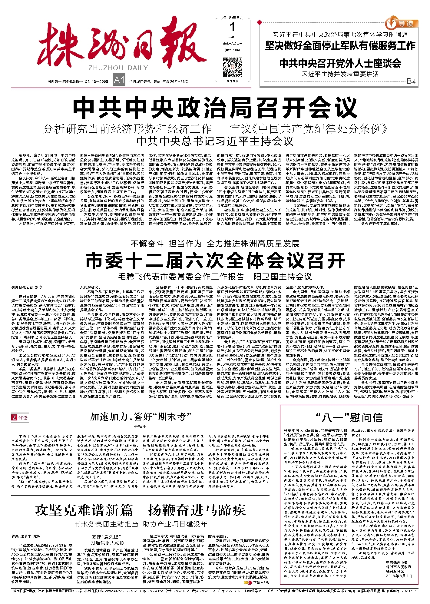 • 新华社北京7月31日电 中共中央政治局7月31日召开会议,分析研究当前经济形势,部署下半年经济工作,审议《中国共产党纪律处分条例》。中共中央总书记习近平主持会议。