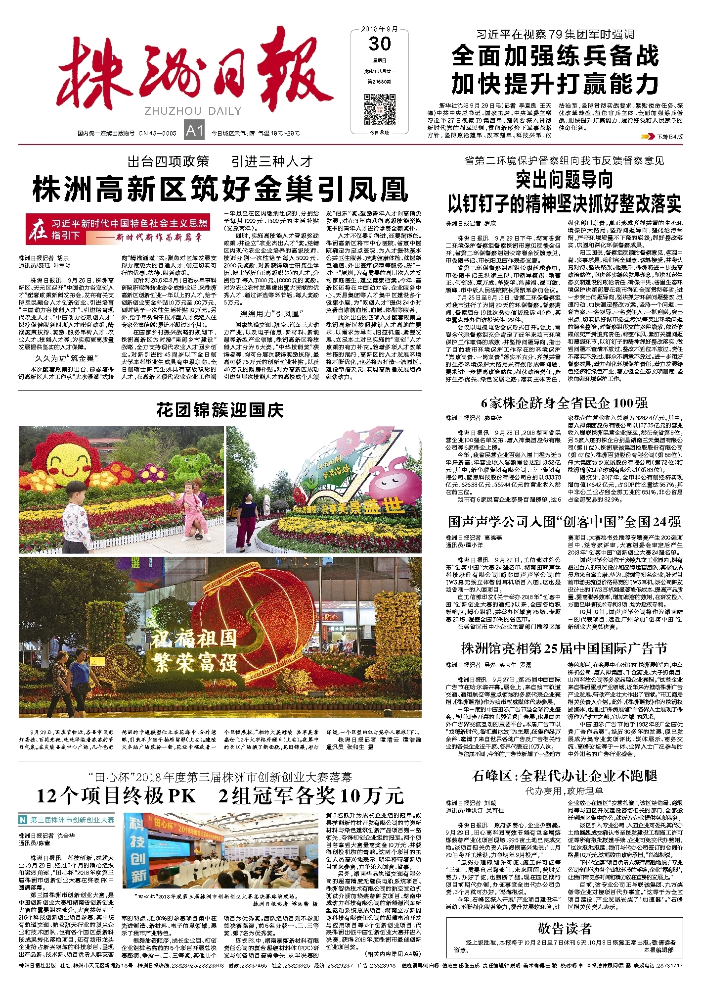 新华社沈阳9月29日电(记者 李宣良 王天德)中共中央总书记、国家主席、中央军委主席习近平27日视察79集团军,强调要深入贯彻新时代党的强军思想,贯彻新形势下军事战略方针,坚持政治建军、改革强军、科技兴军、依法治军,坚持贯彻实战要求、紧贴使命任务、深化改革转型、扭住官兵主体,全面加强练兵备战,加快提升打赢能力,履行好党和人民赋予的使命任务。