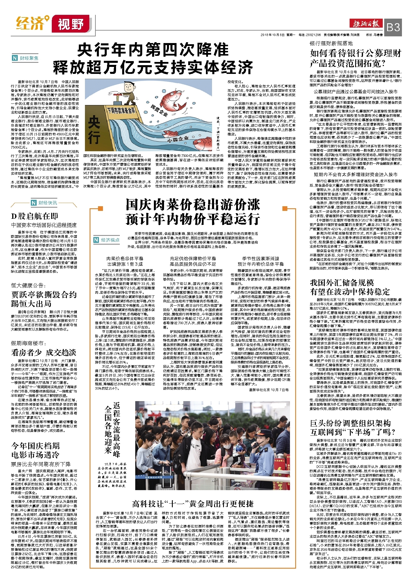 国庆肉菜价稳出游价涨 预计年内物价平稳运行