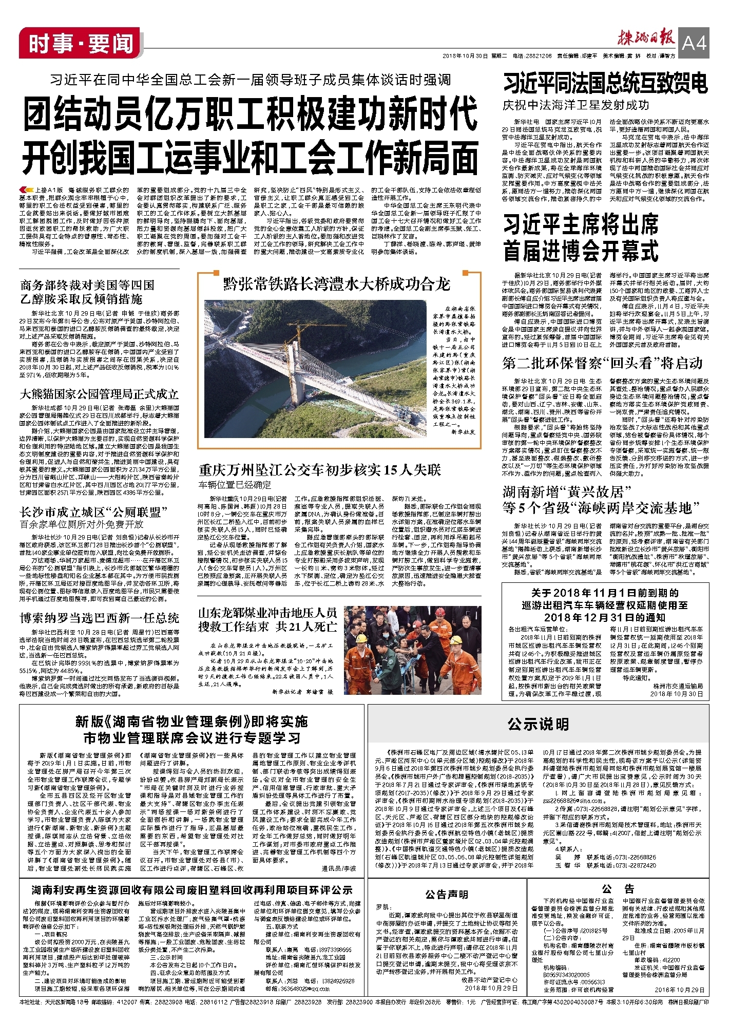 2018年10月30日《株洲日报》