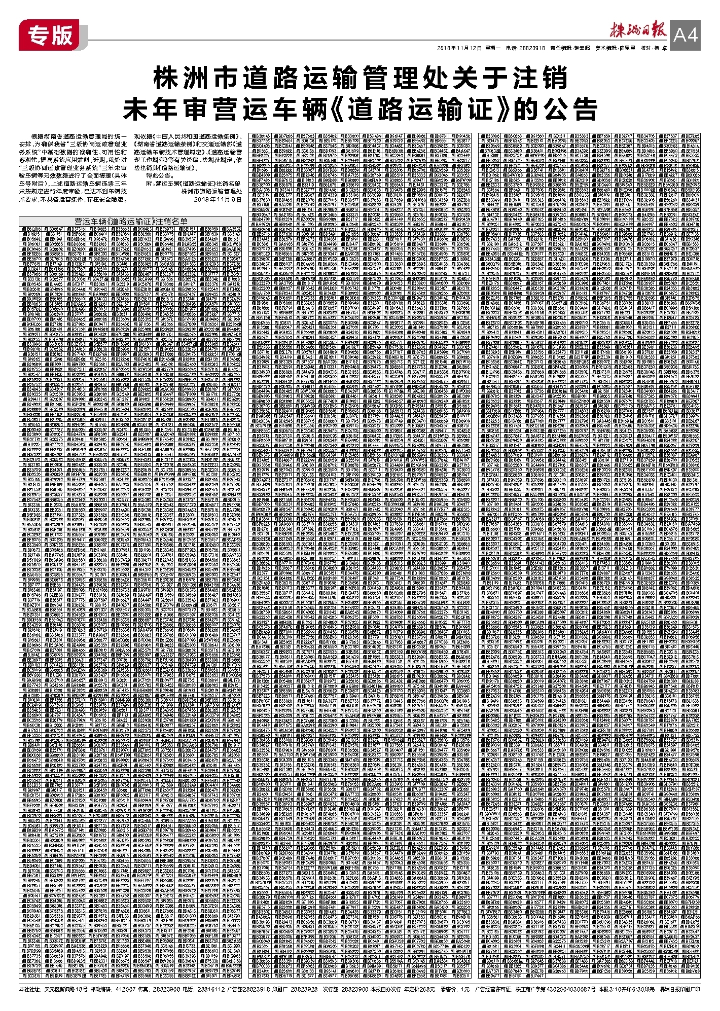2018年11月12日《株洲日报》