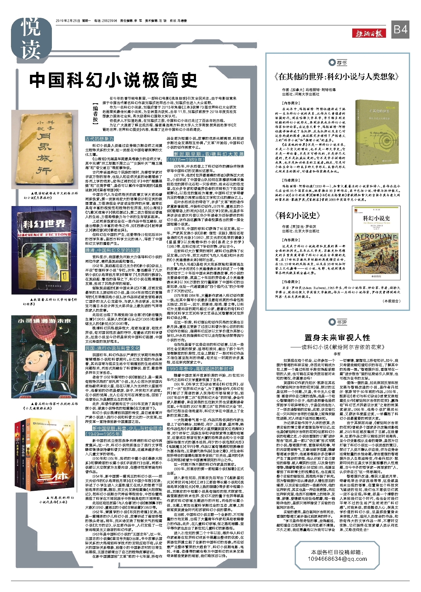 智商提升改造、殖民火星或月球、带着地球去宇宙流浪等等,这些都是尚未出现的场景,但置身这个科技突飞猛进的世纪,我们也不敢说它们就一定不会实现。毕竟,若是一个清朝的人来到我们这个时代,他也会对我们平常不过的生活产生浓浓的“科幻感”。对我来说,那些触动人心,深具文学价值的科幻小说,总是那些置身未来审视人性,追问人类宿命的作品,和所有伟大的文学作品一样,不管时空变换,它们始终在思索着人类从何处来,又将往何处去?