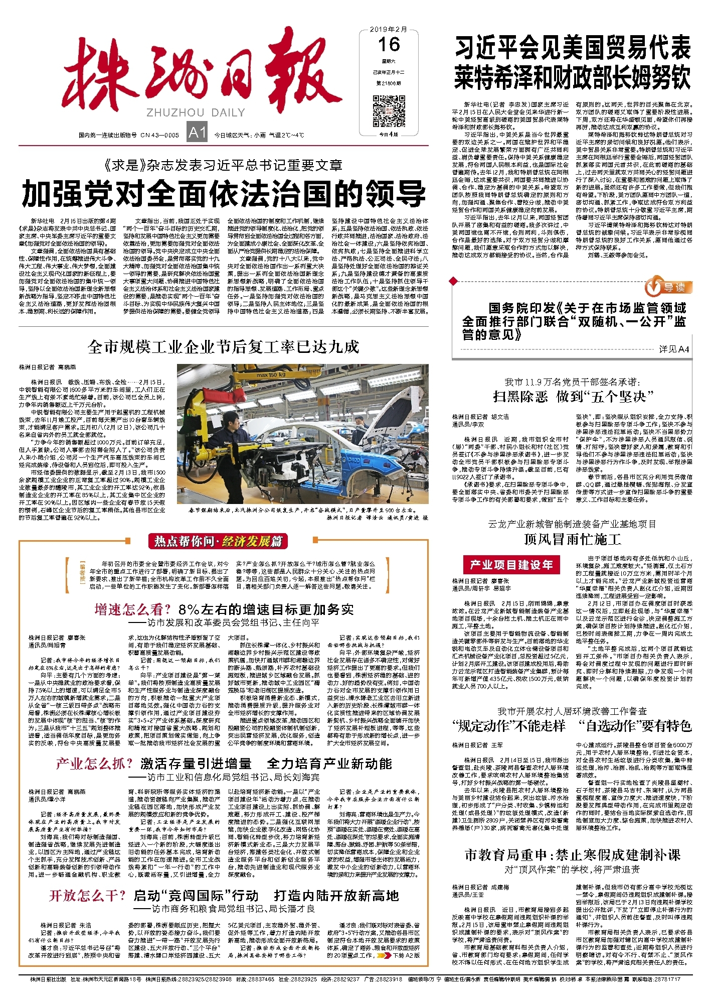 潘才良:习近平总书记号召“将改革开放进行到底”,按照中央和省委的部署,株洲要顺应历史,把握大势,以开放的姿态接力奋斗。我们要奋力推进“一带一路”开放发展先行区建设、五大开放行动、“三个平台”搭建、清水塘口岸经济园建设、五大5亿美元项目,主攻稳外贸、稳外资、促外经等工作,着力打造内陆开放新高地,推动形成全面开放新格局。