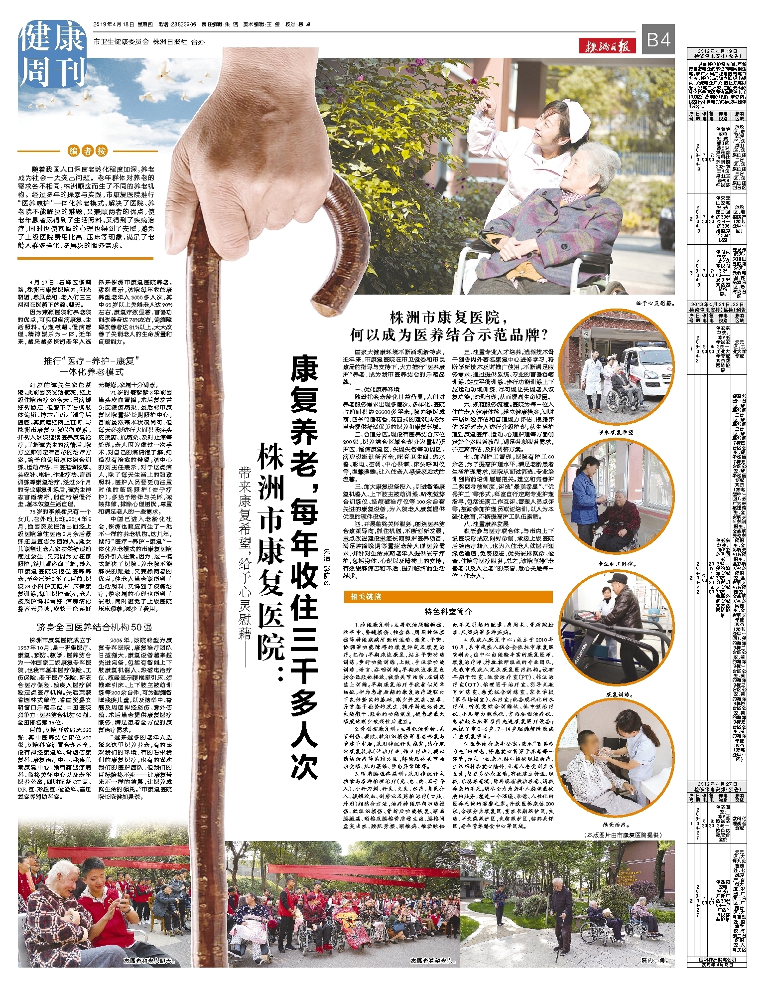 随着我国人口深度老龄化程度加深,养老成为社会一大突出问题。老年群体对养老的需求各不相同,株洲顺应而生了不同的养老机构。经过多年的探索与实践,市康复医院推行“医养康护”一体化养老模式,解决了医院、养老院不能解决的难题,又兼顾两者的优点,使老年患者既得到了生活照料,又得到了疾病治疗,同时也使家属的心理也得到了安慰,避免了上级医院费用比高、压床等现象,满足了老龄人群多样化、多层次的服务需求。