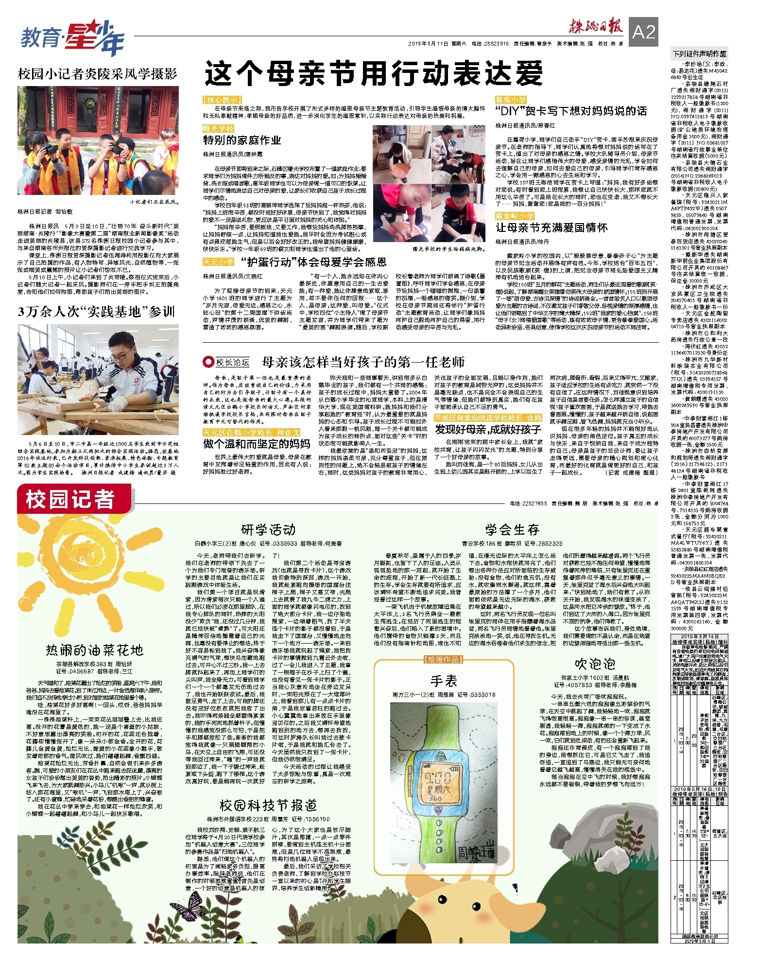 在母亲节来临之际,我市各学校开展了形式多样的感恩母亲节主题教育活动,引导学生感悟母亲的博大胸怀和无私奉献精神,孝顺母亲的好品质,进一步深化学生的感恩意识,以实际行动表达对母亲的热爱和祝福。