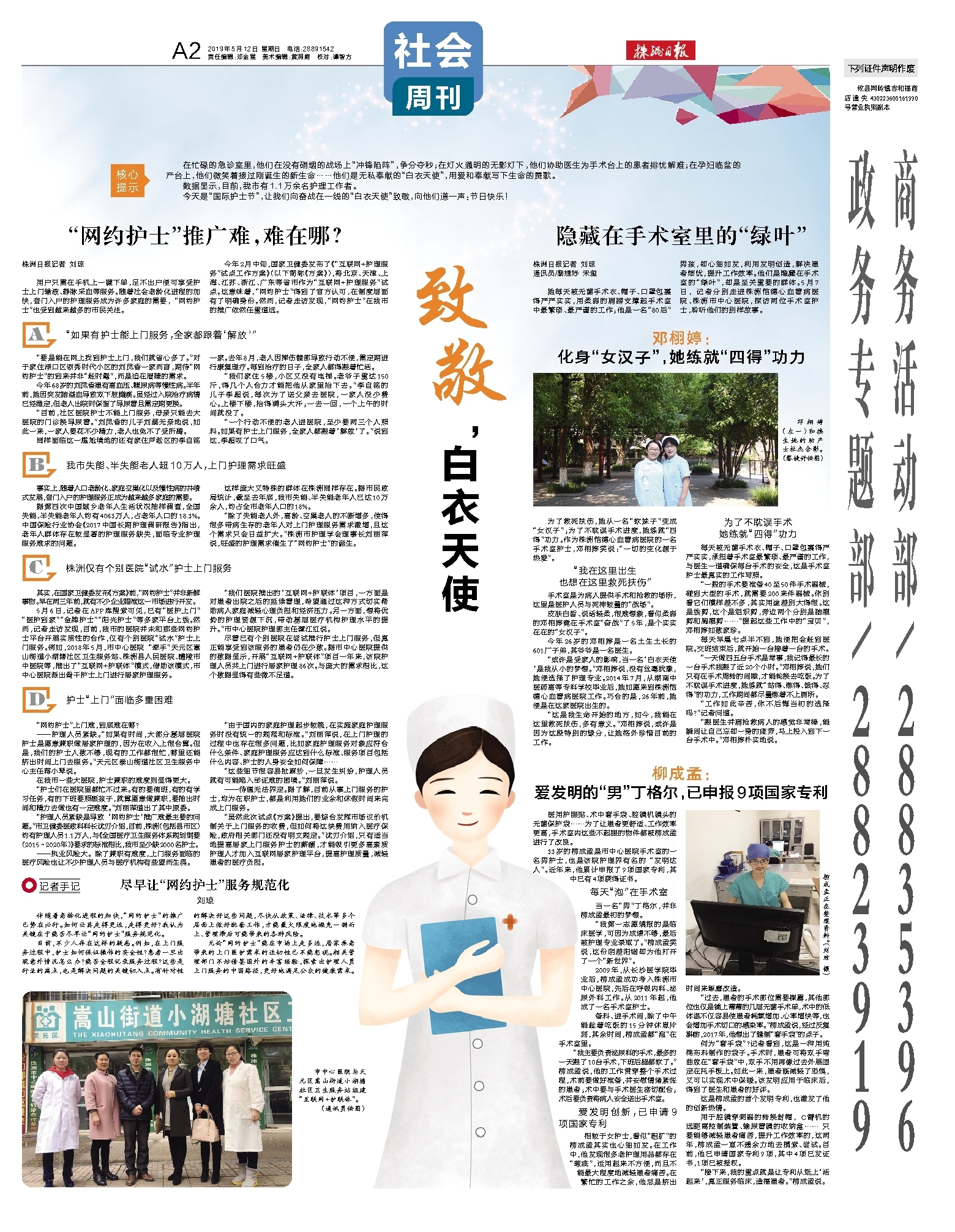 5月6日,记者在APP库搜索可见,已有“医护上门”“医护到家”“金牌护士”“阳光护士”等多家平台上线。然而,记者走访发现,目前,我市的医院并未和那些网约护士平台开展实质性的合作,仅有个别医院“试水”护士上门服务。例如,2018年5月,市中心医院 “牵手”天元区嵩山街道小湖塘社区卫生服务站、株洲县人民医院、醴陵市中医院等,推出了“互联网+护联体”模式,借助该模式,市中心医院派出骨干护士上门进行居家护理服务。