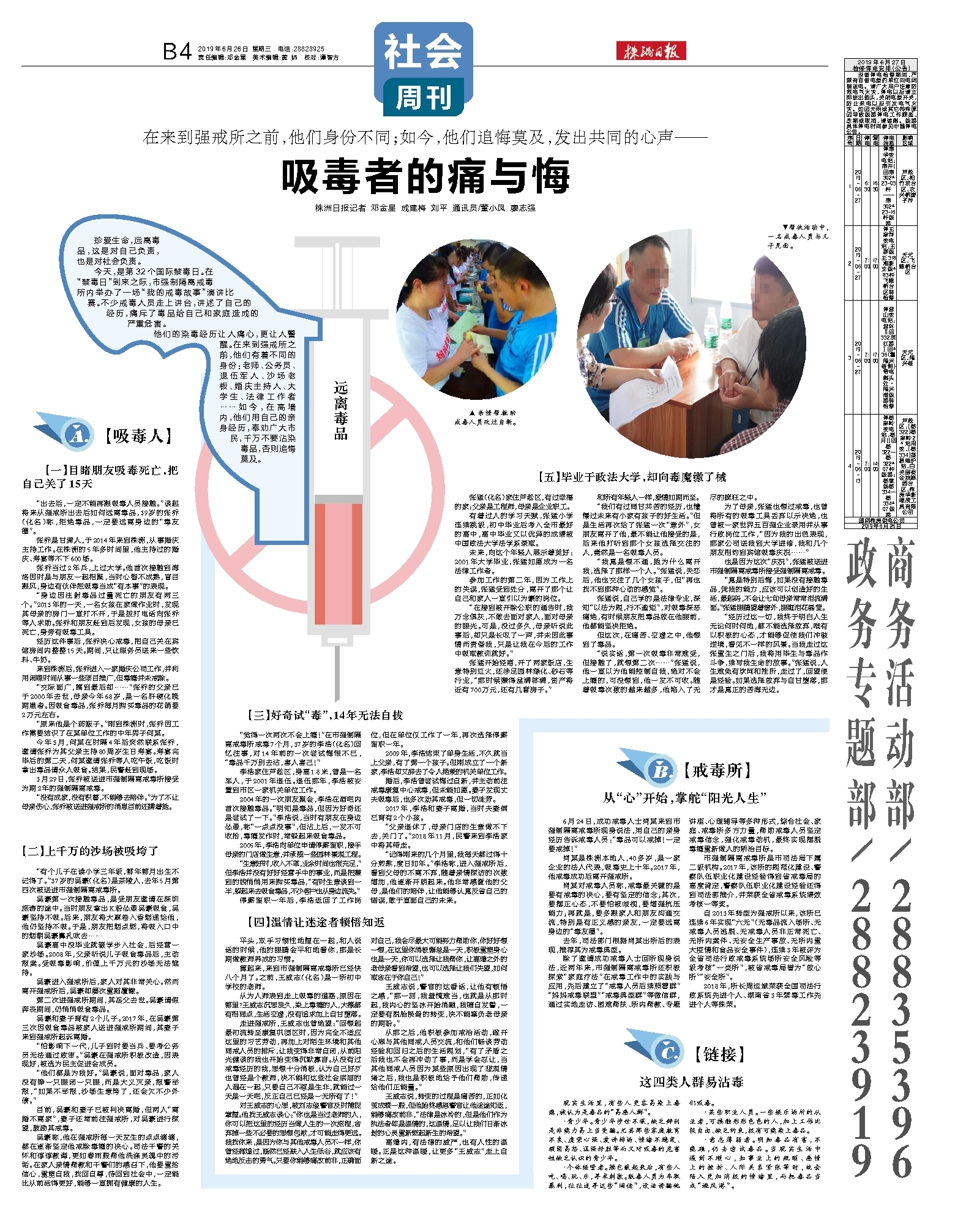 他们的染毒经历让人痛心,更让人警醒。在来到强戒所之前,他们有着不同的身份:老师、公务员、退伍军人、沙场老板、婚庆主持人、大学生、法律工作者……如今,在高墙内,他们用自己的亲身经历,奉劝广大市民,千万不要沾染毒品,否则追悔莫及。