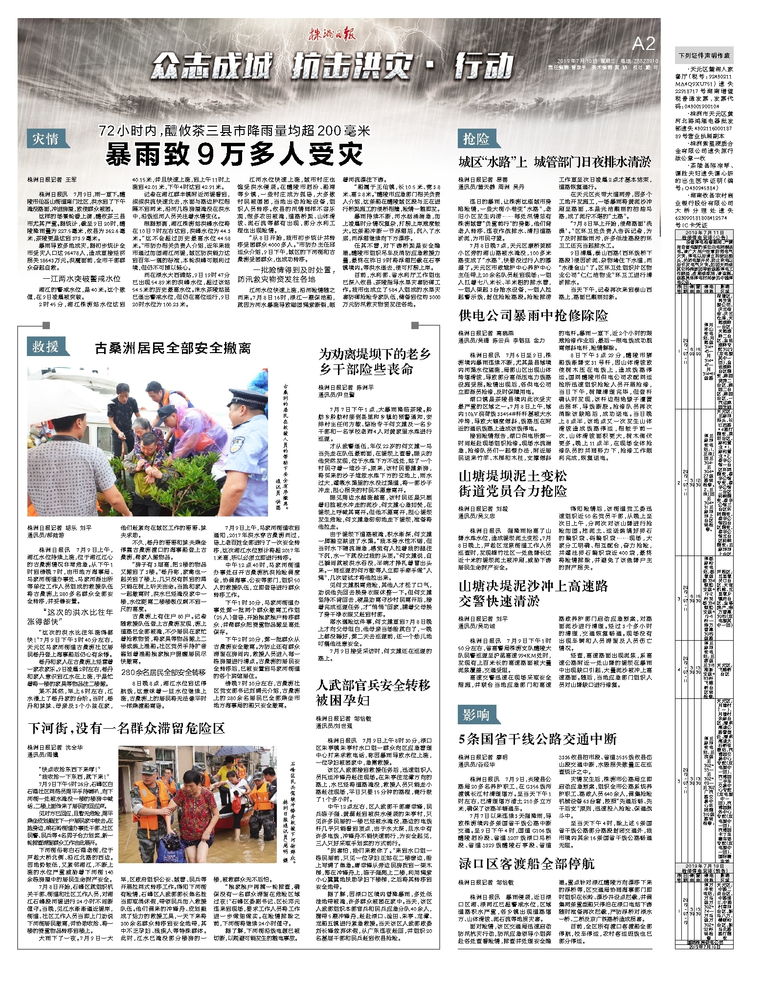 2时45分,湘江株洲站水位达到40.15米,并且快速上涨,到上午11时上涨到42.01米,下午4时达到42.91米。