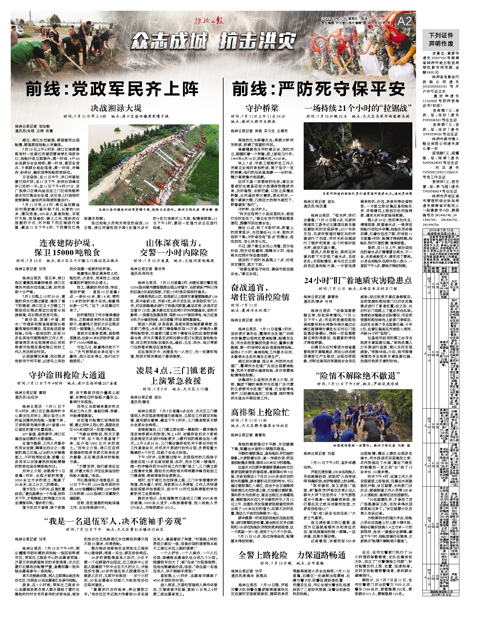 湘江、渌江水位猛涨,哪里堤坝出现险情,哪里就有抢险人员集结。