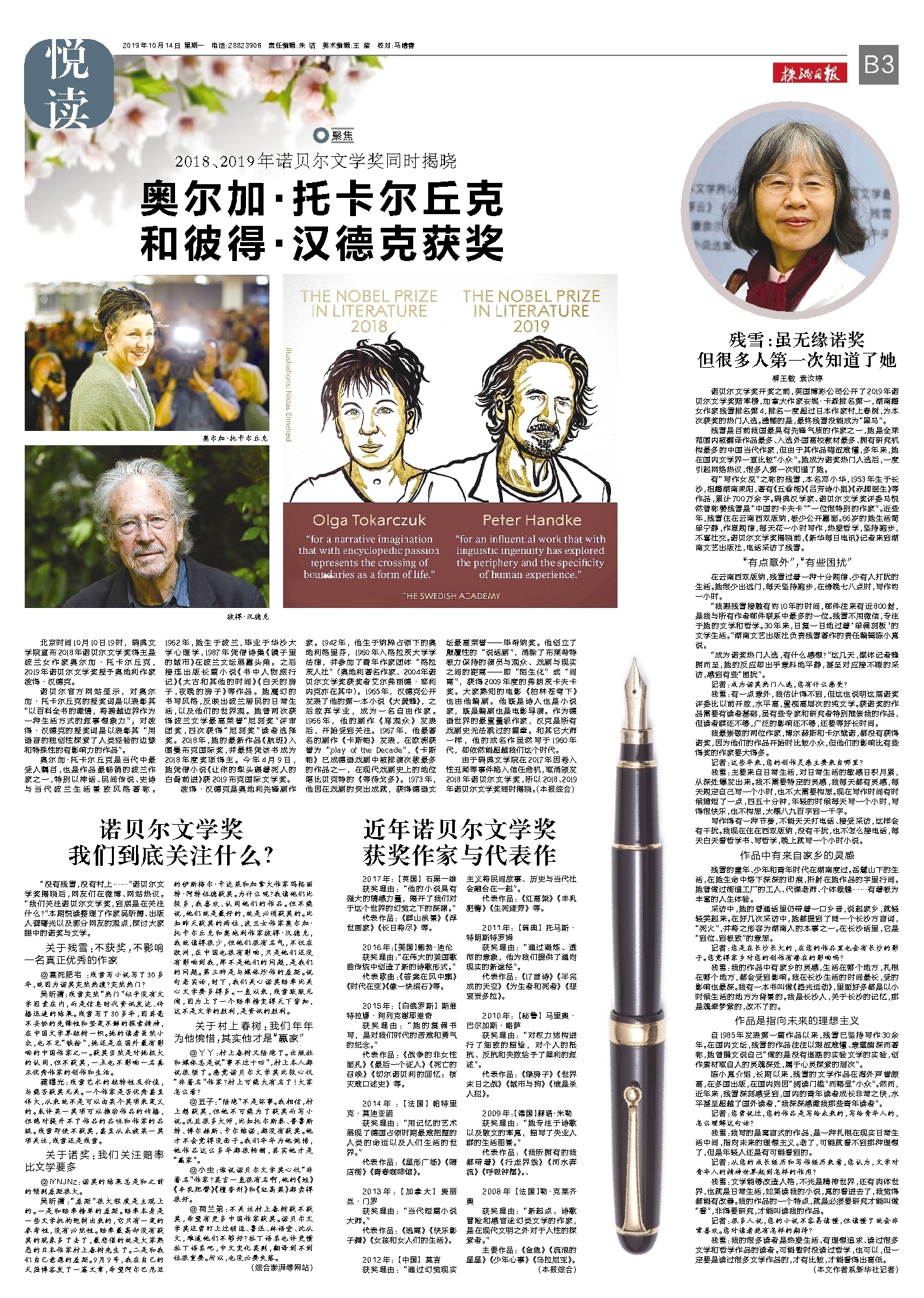 奥尔加·托卡尔丘克 和彼得·汉德克获奖