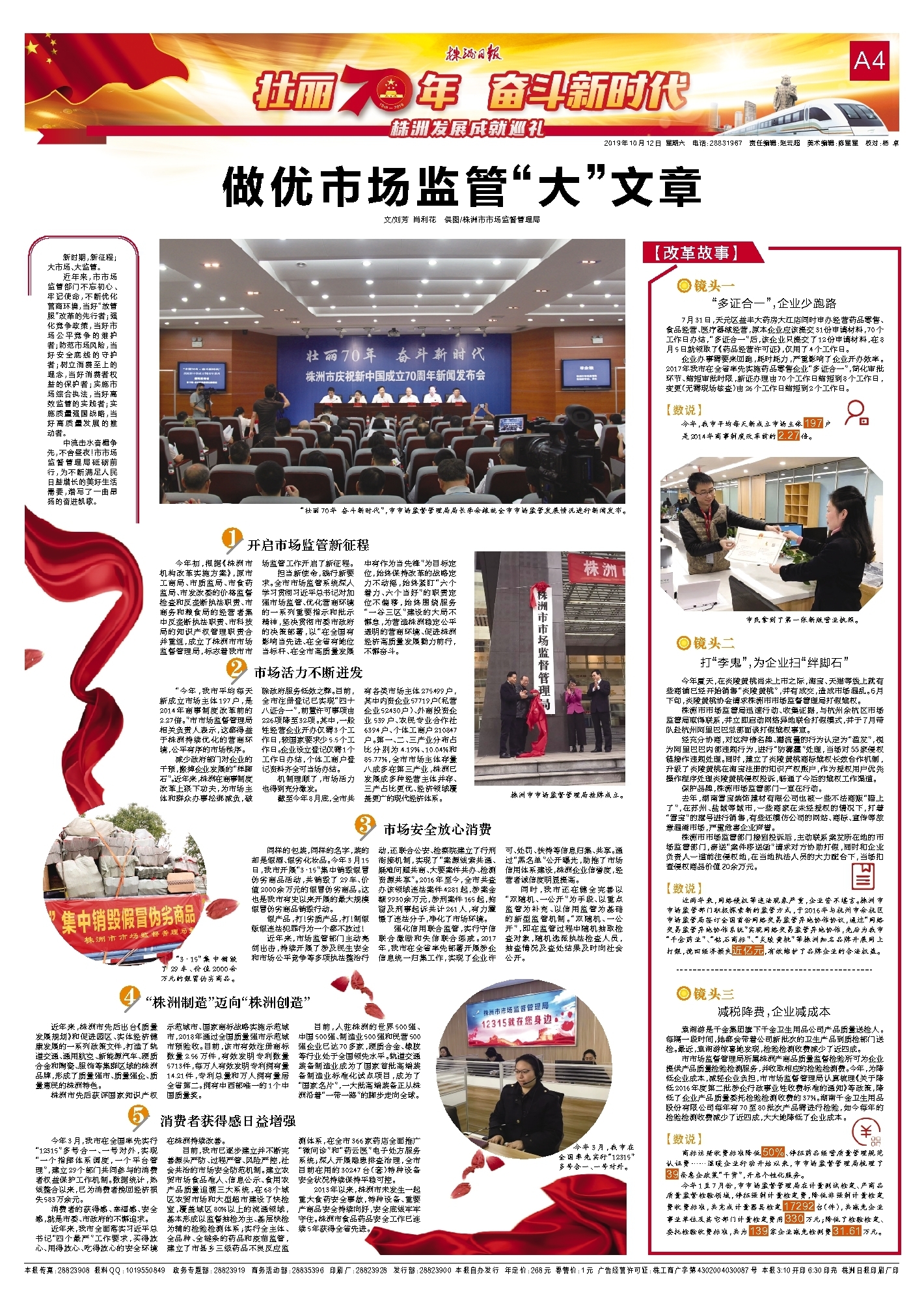 担当新使命,践行新要求。全市市场监管系统深入学习贯彻习近平总书记对加强市场监管、优化营商环境的一系列重要指示和批示精神,坚决贯彻市委市政府的决策部署,以“在全国有影响当先进、在全省有地位当标杆、在全市高质量发展中有作为当先锋”为目标定位,始终保持改革的战略定力不动摇,始终紧盯“六个着力、六个当好”的职责定位不偏移,始终围绕服务“一谷三区”建设的大局不懈怠,为营造株洲稳定公平透明的营商环境、促进株洲经济高质量发展勠力前行,不懈奋斗。
