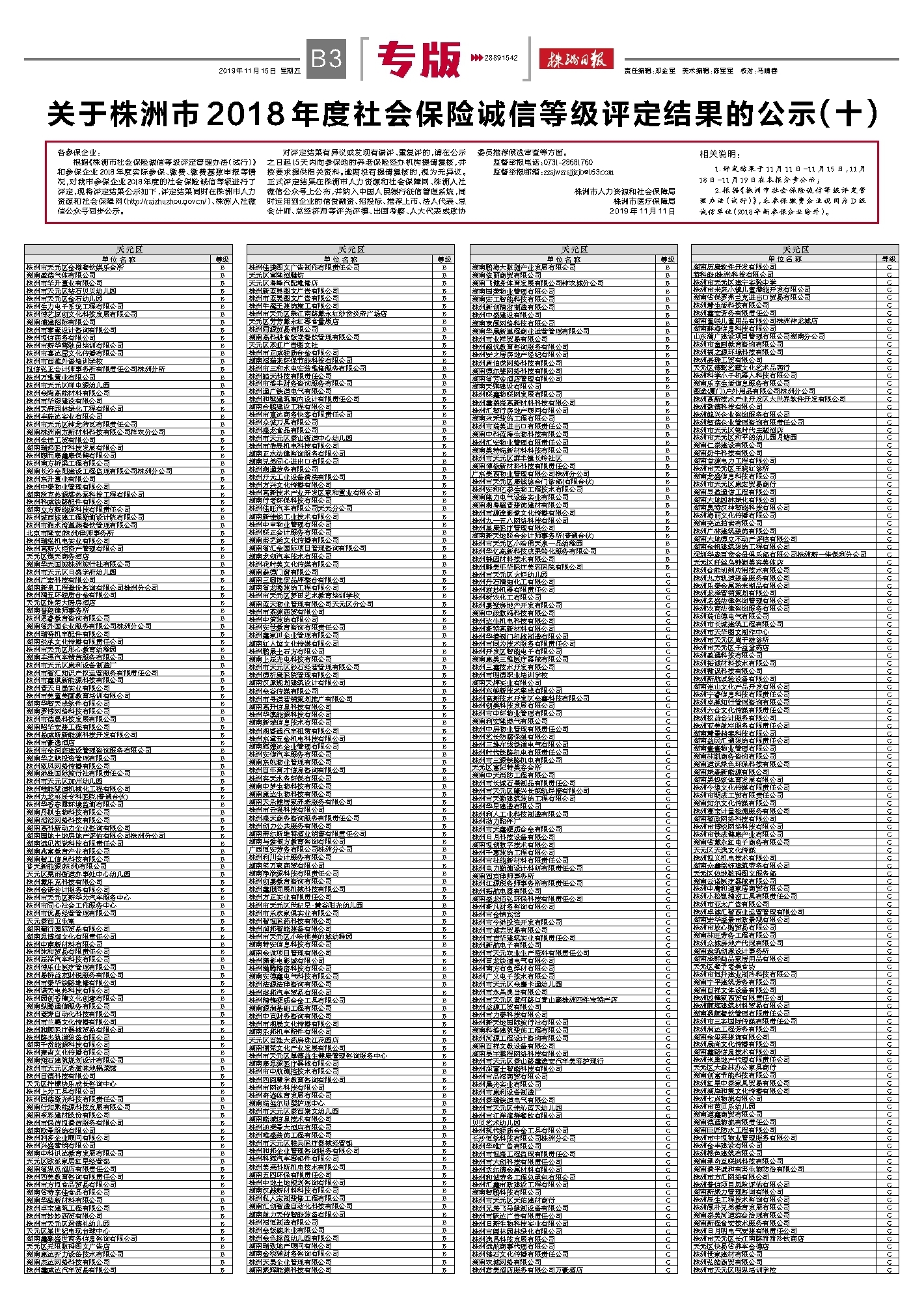 关于株洲市2018年度社会保险诚信等级评定结果的公示(十)