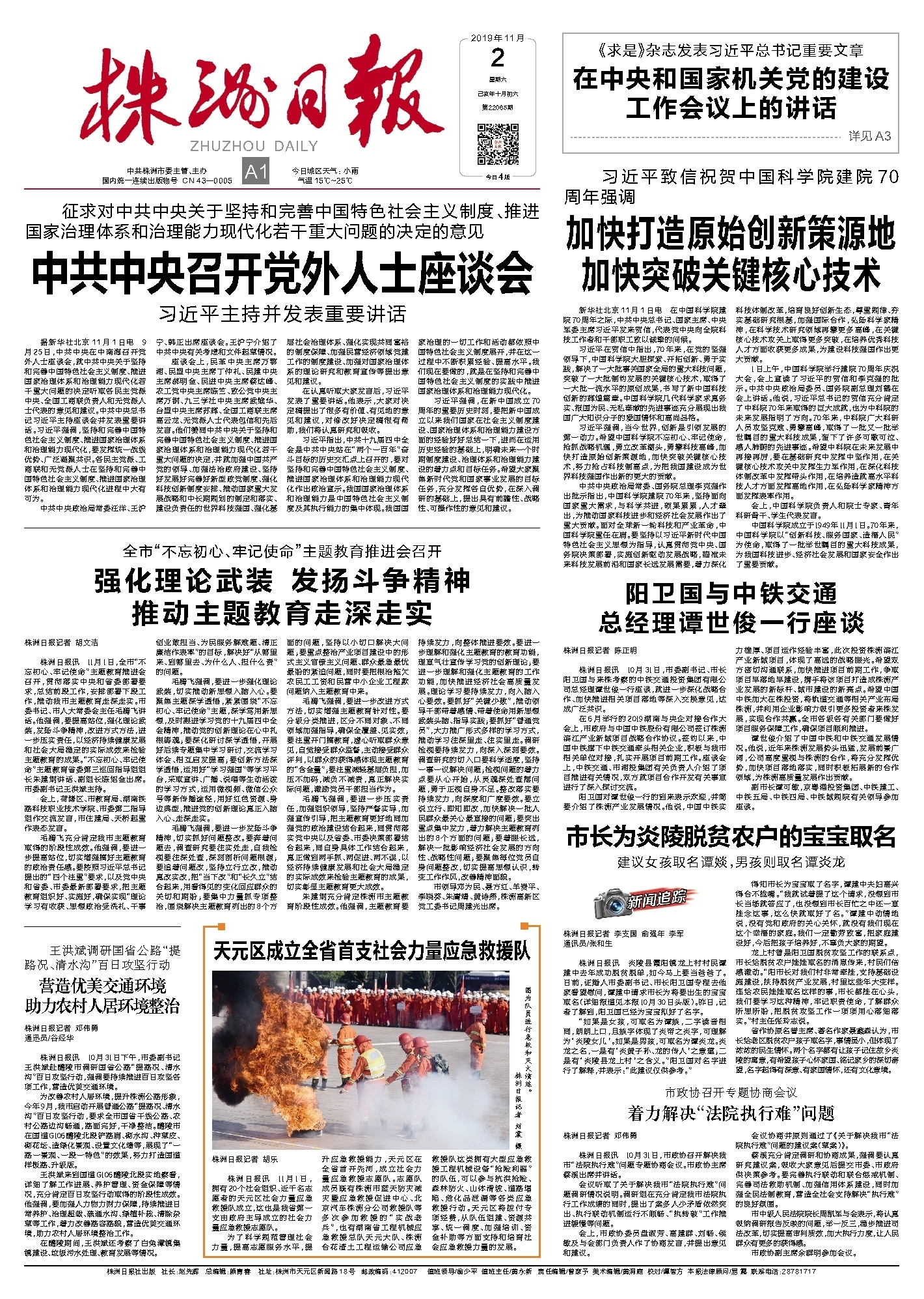 1日上午,中国科学院举行建院70周年庆祝大会,会上宣读了习近平的贺信和李克强的批示。中共中央政治局委员、国务院副总理刘鹤在会上讲话。他说,习近平总书记的贺信充分肯定了中科院70年来取得的巨大成就,也为中科院的未来发展指明了方向。70年来,中科院广大科研人员攻坚克难、勇攀高峰,取得了一批又一批举世瞩目的重大科技成果,留下了许多可歌可泣、感人肺腑的先进事迹。希望中科院在未来发展中再接再厉,要在基础研究中发挥中坚作用,在关键核心技术攻关中发挥生力军作用,在深化科技体制改革中发挥带头作用,在培养造就高水平科技人才方面发挥高地作用,在弘扬科学家精神方面发挥表率作用。