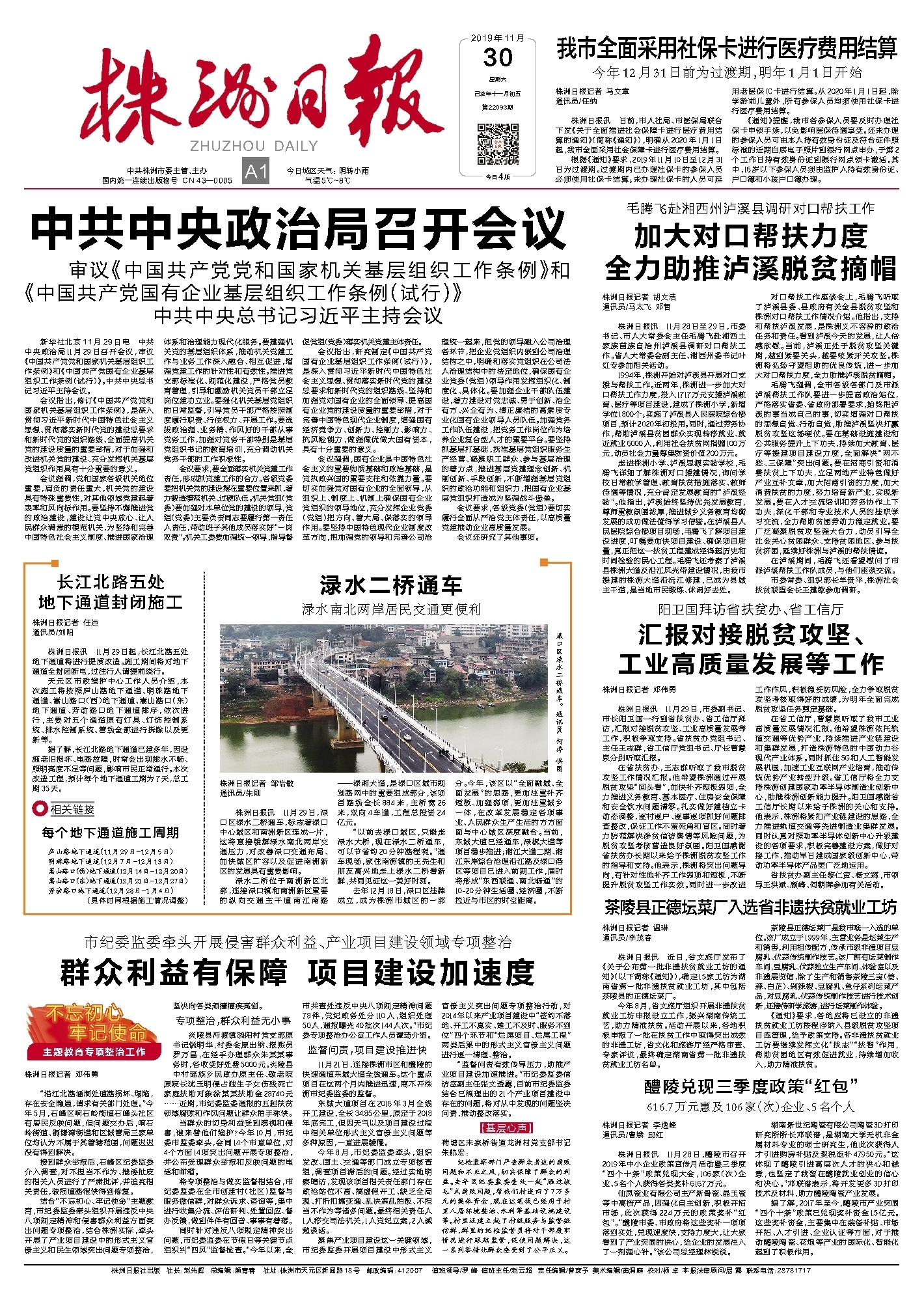 株洲日报讯 日前,市人社局、市医保局联合下发《关于全面推进社会保障卡进行医疗费用结算的通知》(简称《通知》),明确从2020年1月1日起,我市全面采用社会保障卡进行医疗费用结算。