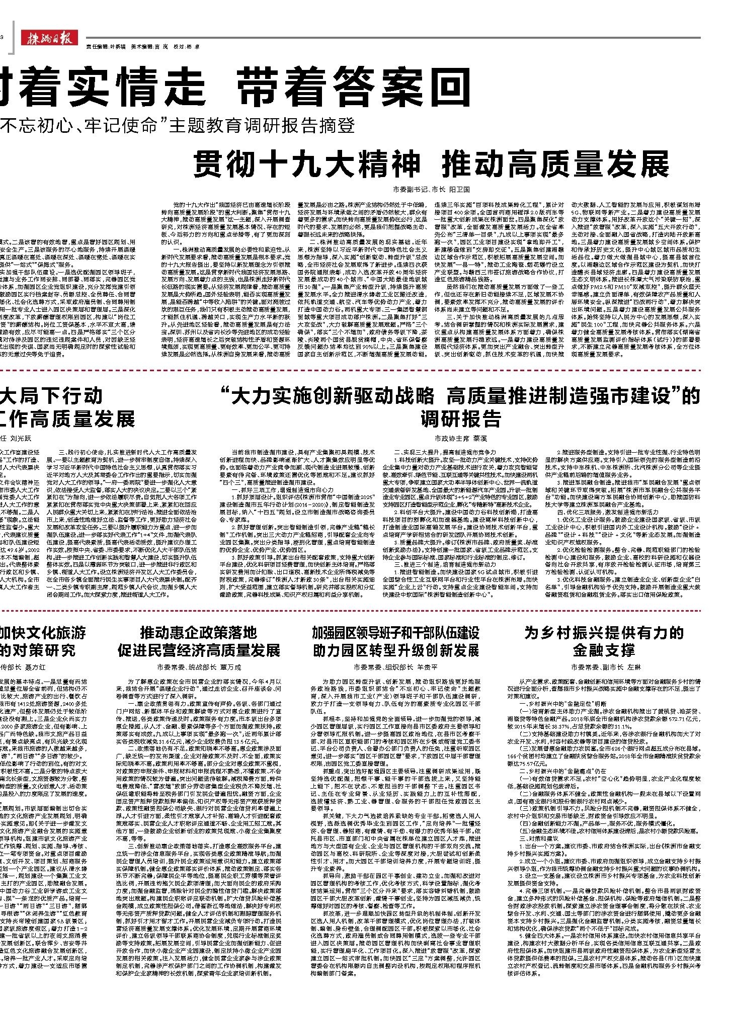 贯彻十九大精神 推动高质量发展