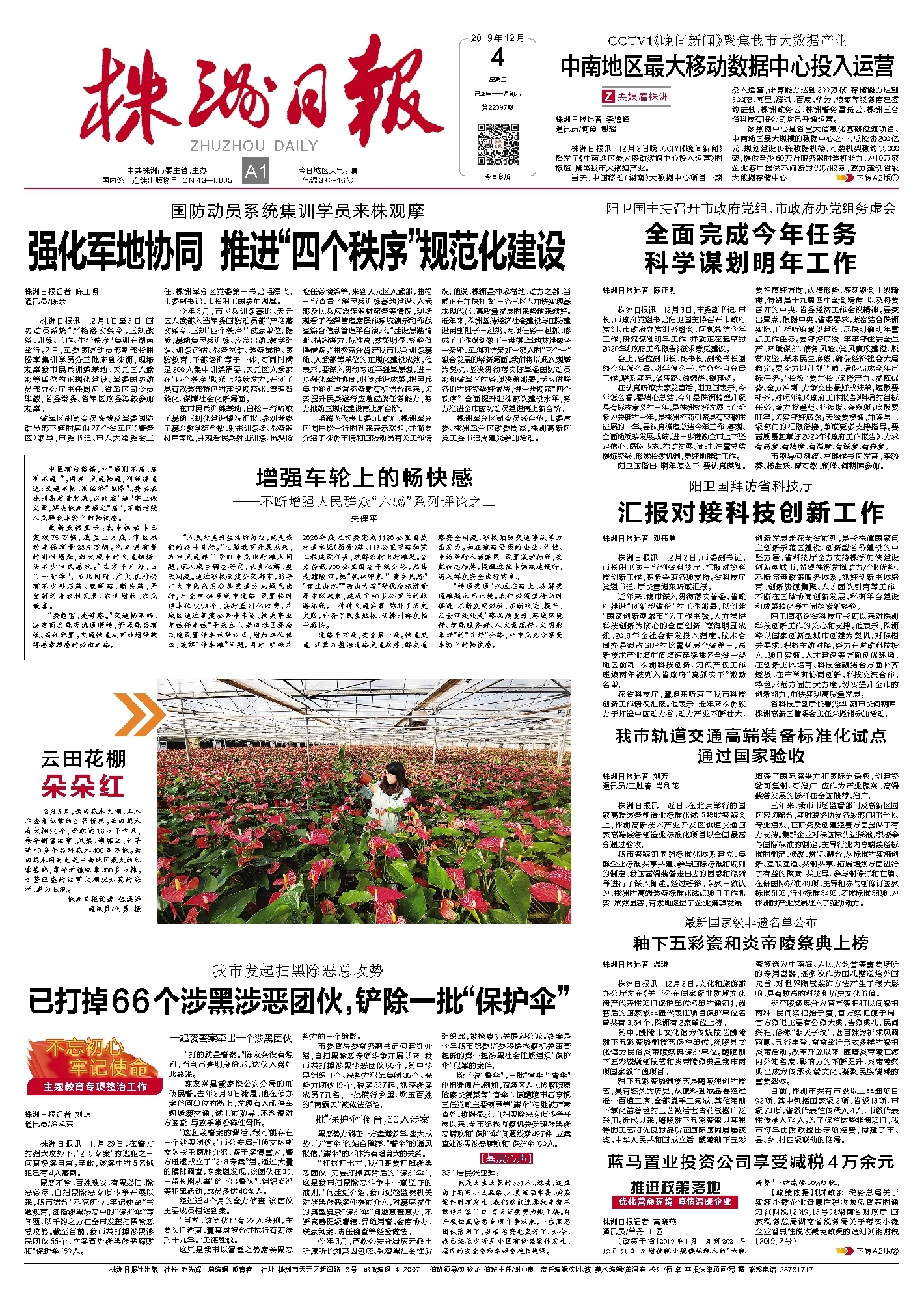 株洲日报讯 12月2日晚,CCTV1《晚间新闻》播发了《中南地区最大移动数据中心投入运营》的报道,聚焦我市大数据产业。