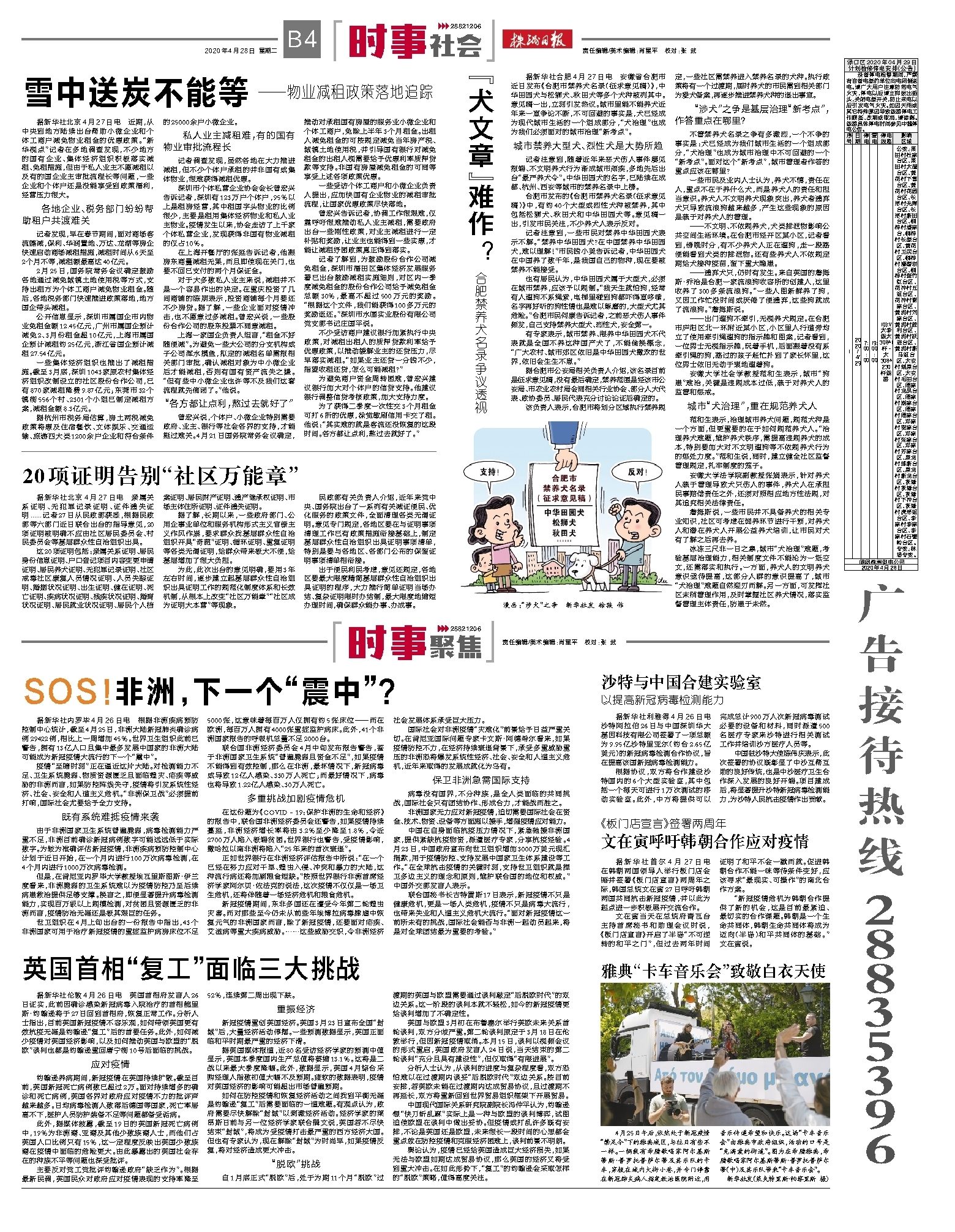 4月25日午后,依然处于新冠疫情“禁足令”下的雅典城区,与往日有些不一样。一辆载有希腊歌唱家阿尔基斯蒂斯·普罗托普萨尔蒂及其乐队的卡车,穿梭在城内大街小巷,并专门停靠在新冠肺炎病人指定救治医院附近,用音乐传递希望和快乐。这场“卡车音乐会”由雅典市政府组织,活动的口号是“充满爱的街道”。图为在希腊雅典,希腊歌唱家阿尔基斯蒂斯·普罗托普萨尔蒂(中)及其乐队带来“卡车音乐会”。 新华社发(莱夫特里斯·帕察里斯 摄)