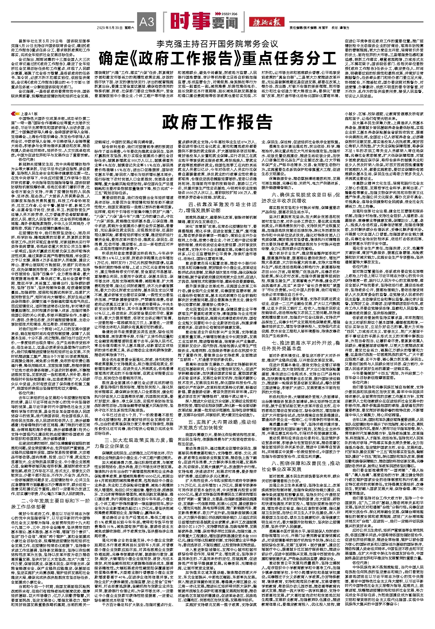 确定《政府工作报告》重点任务分工
