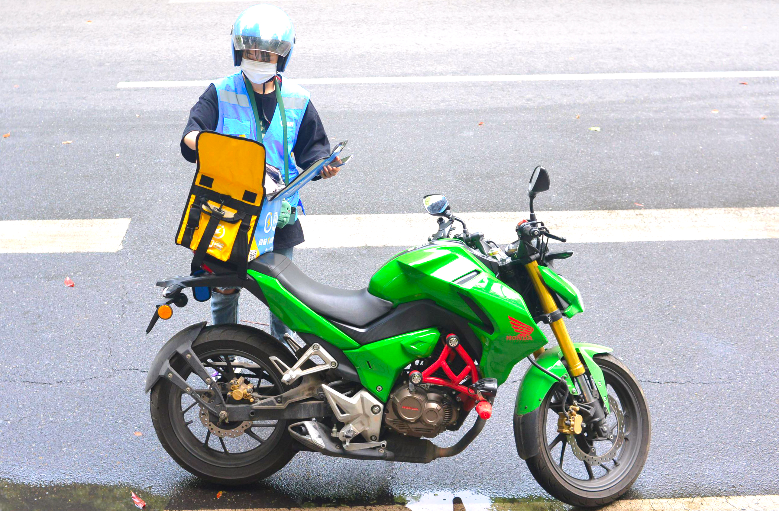 胡蝶在送餐的路上。 谢慧 摄