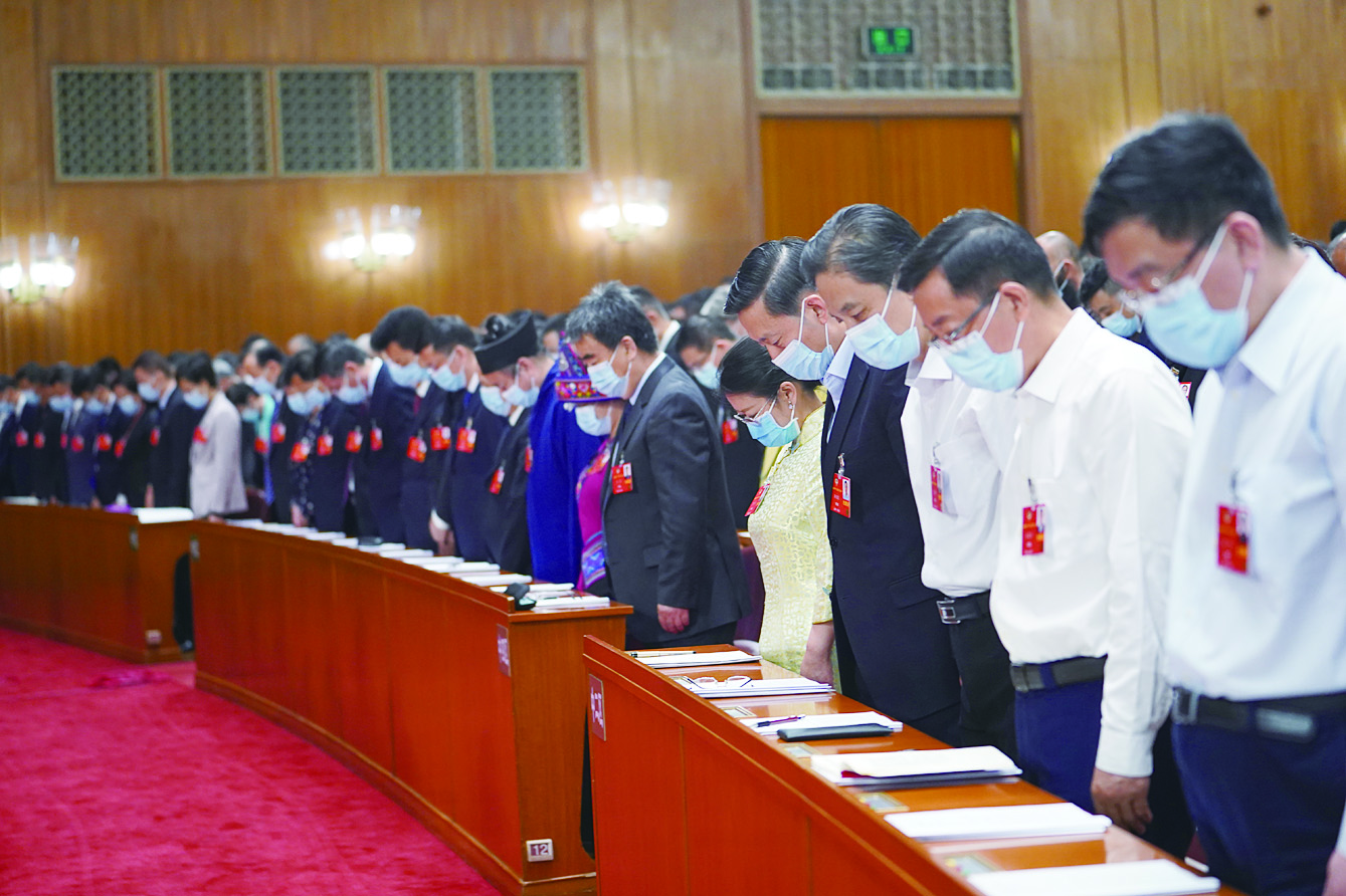 5月21日,中国人民政治协商会议第十三届全国委员会第三次会议在北京人民大会堂开幕。全体与会人员默哀1分钟,向新冠肺炎疫情牺牲烈士和逝世同胞表示深切哀悼。