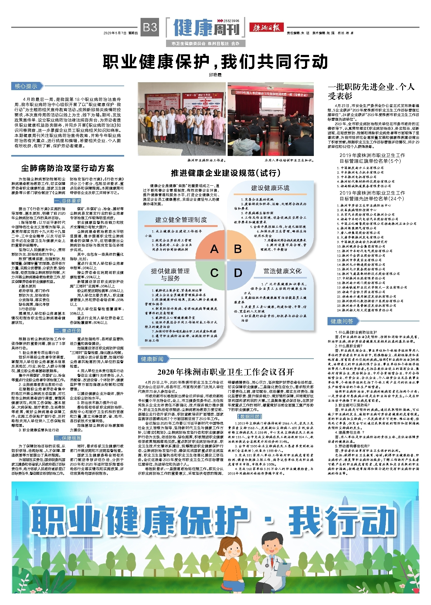 会议指出2020年工作要以习近平新时代中国特色社会主义思想为指导,坚持新时代卫生与健康工作方针,以落实《规划》、尘肺病防治攻坚行动和职业健康保护行动为主线,依法防治、综合施策,积极推进职业健康各项政策措施落地见效。重点抓好职业病防治体系、职业卫生技术支撑体系建设,统筹推进职业健康保护行动、尘肺病防治攻坚行动,确保完成国家重点职业病监测、职业卫生监督执法和职业卫生信息化建设三项任务。会议还表彰2019年度全市职业卫生工作目标管理红旗单位、先进单位和先进个人。