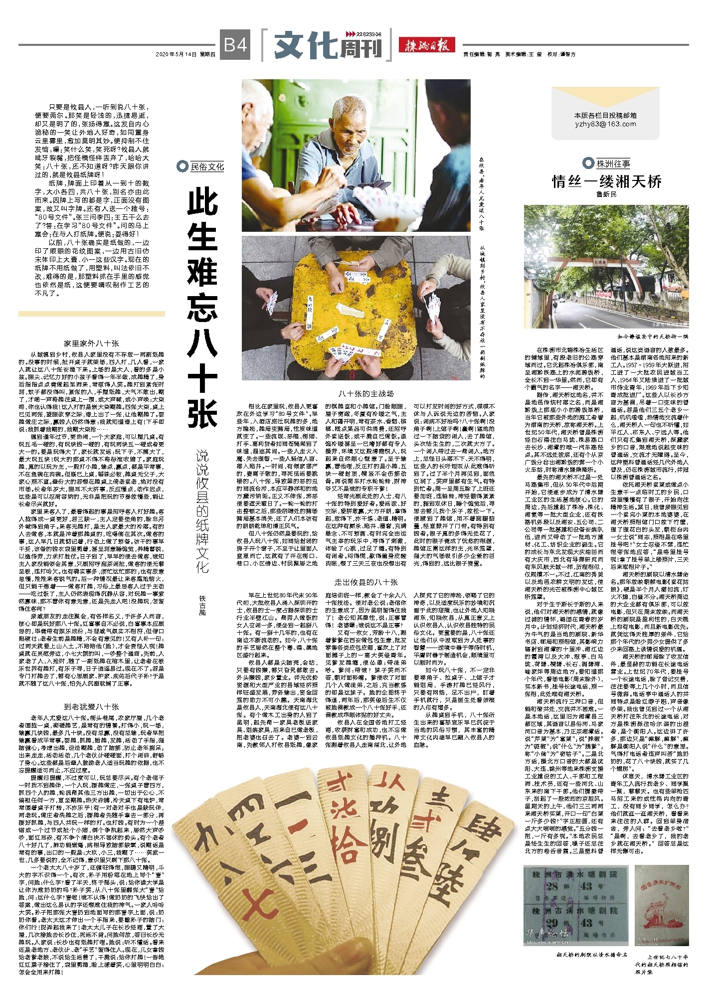 休息天,清水塘工业区的青年工人流行找老乡、同学聚一聚,聊聊天。也有些单枪匹马招工来的或性格内向的青工,没有同乡同学,怎么办?他们就逛一逛湘天桥,看看来来往往的人群。回到单身宿舍,旁人问:“去看老乡啦?”“是啊,去看老乡了,我的老乡就在湘天桥。”回答总是这样无懈可击。