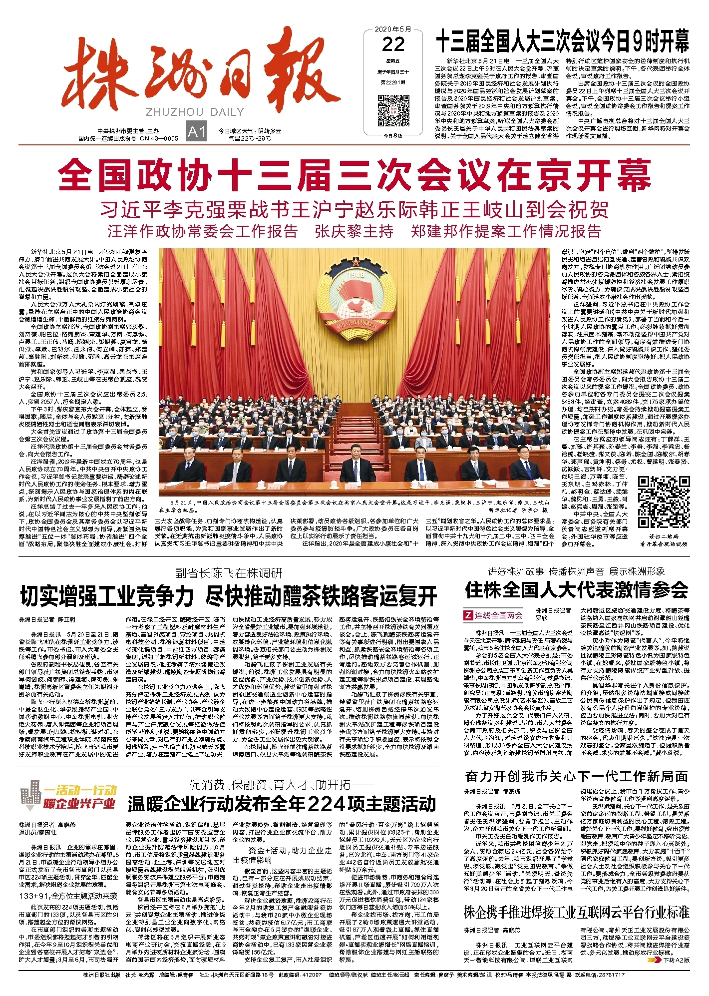 新华社北京5月21日电 十三届全国人大三次会议22日上午9时在人民大会堂开幕,听取国务院总理李克强关于政府工作的报告,审查国务院关于2019年国民经济和社会发展计划执行情况与2020年国民经济和社会发展计划草案的报告及2020年国民经济和社会发展计划草案,审查国务院关于2019年中央和地方预算执行情况与2020年中央和地方预算草案的报告及2020年中央和地方预算草案,听取全国人大常委会副委员长王晨关于中华人民共和国民法典草案的说明、关于全国人民代表大会关于建立健全香港特别行政区维护国家安全的法律制度和执行机制的决定草案的说明。下午,各代表团举行全体会议,审议政府工作报告。