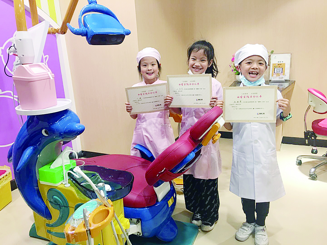 5月31日下午2时30分,我带着9岁的女儿馨予,来到奥园广场的“鲨鱼公园”参与扎染体验课,陪伴她过“六一”。