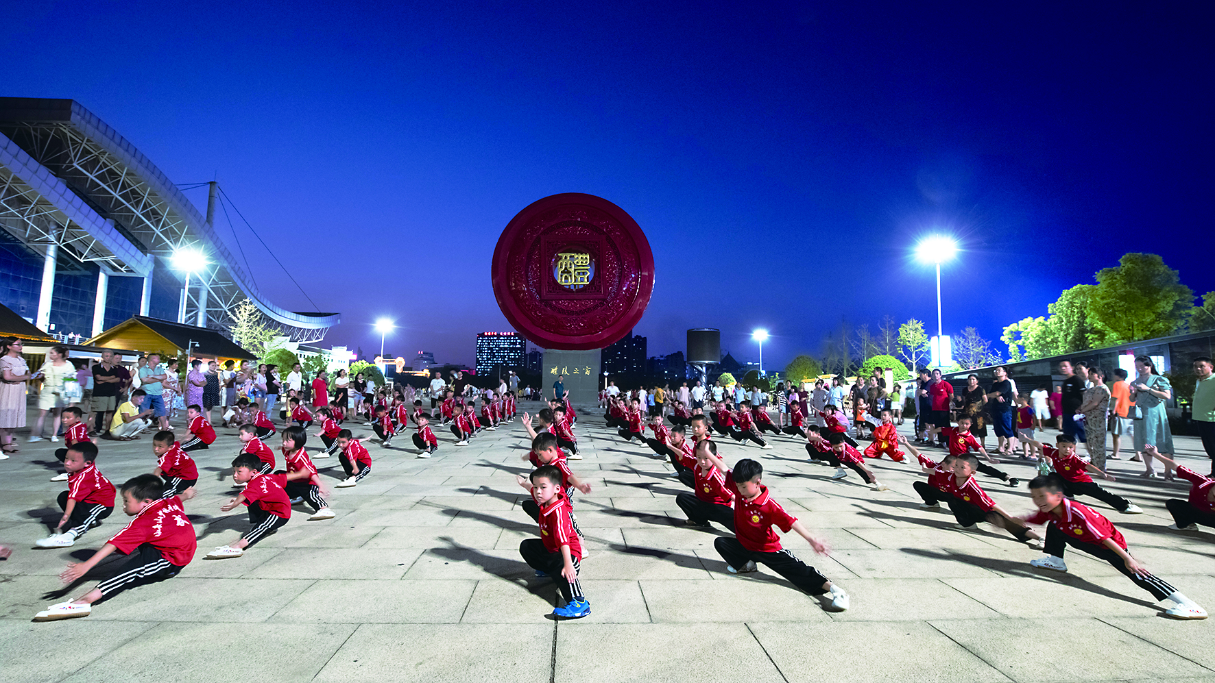 孩子们在渌江广场表演武术。 彭雪飞 摄