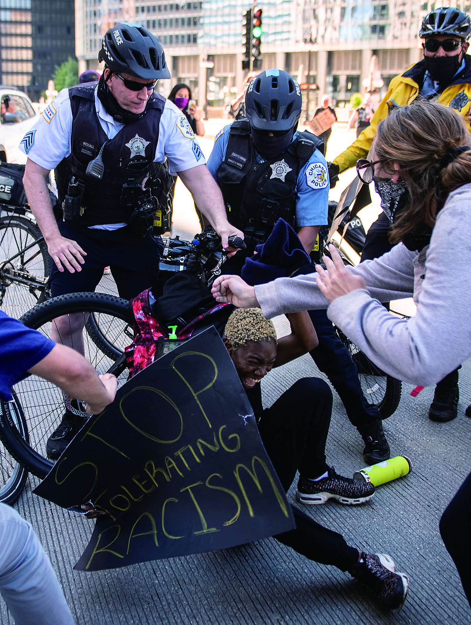 5月30日,在美国芝加哥,警察与示威者发生冲突。 新华社发