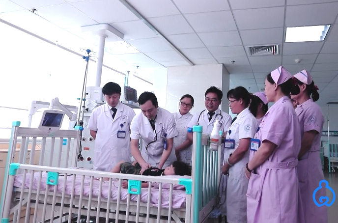 周树林(左二)带领儿科医护团队查房。