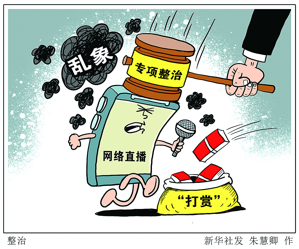 据新华社北京6月5日电 针对网民反映强烈的网络直播“打赏”严重冲击主流价值观等行业突出问题,国家网信办、全国“扫黄打非”办会同最高人民法院、工业和信息化部、公安部、文化和旅游部、市场监管总局、广电总局等部门5日启动为期半年的网络直播行业专项整治和规范管理行动。