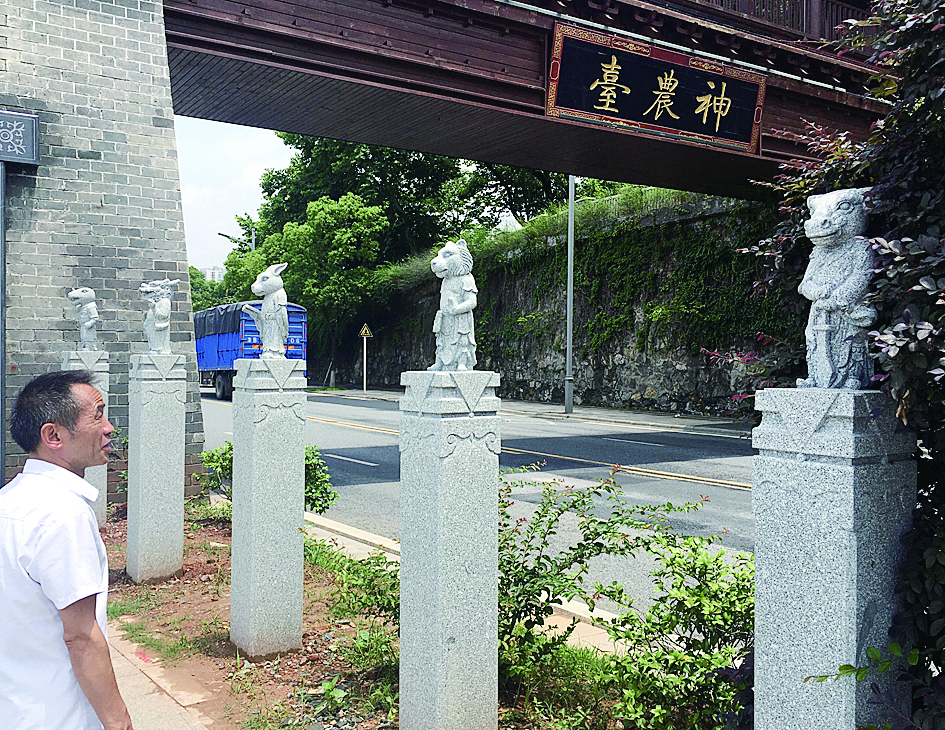 人人都可以根据自己的生肖选择与对应的石雕合影……6月4日,芦淞区沿江路神农台两侧新竖立的12尊雕塑吸引了市民注意。12尊雕塑沿着人行道由南往北方向排列,依次为鼠、牛、虎、兔、龙、蛇、马、羊、猴、鸡、狗、猪十二生肖的站立形象。 株洲日报记者 刘平 摄