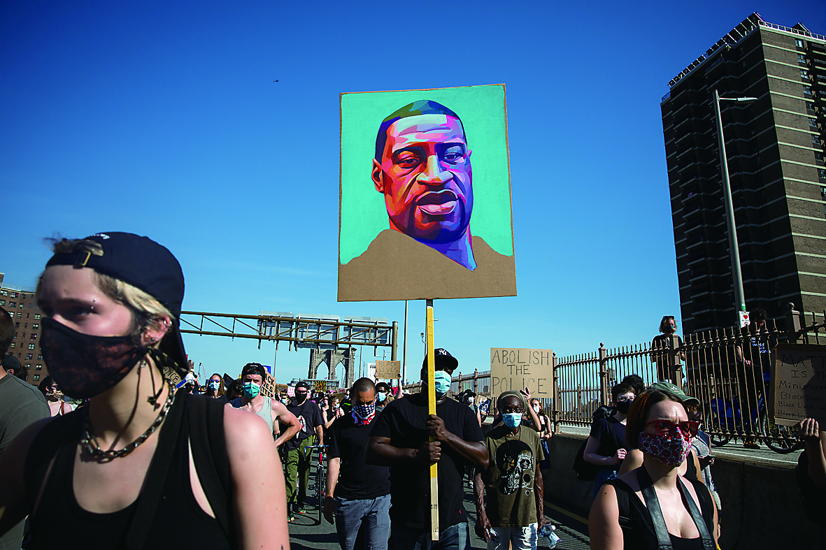 6月9日,抗议者手举乔治·弗洛伊德的画像在美国纽约街头参加抗议活动。新华社发